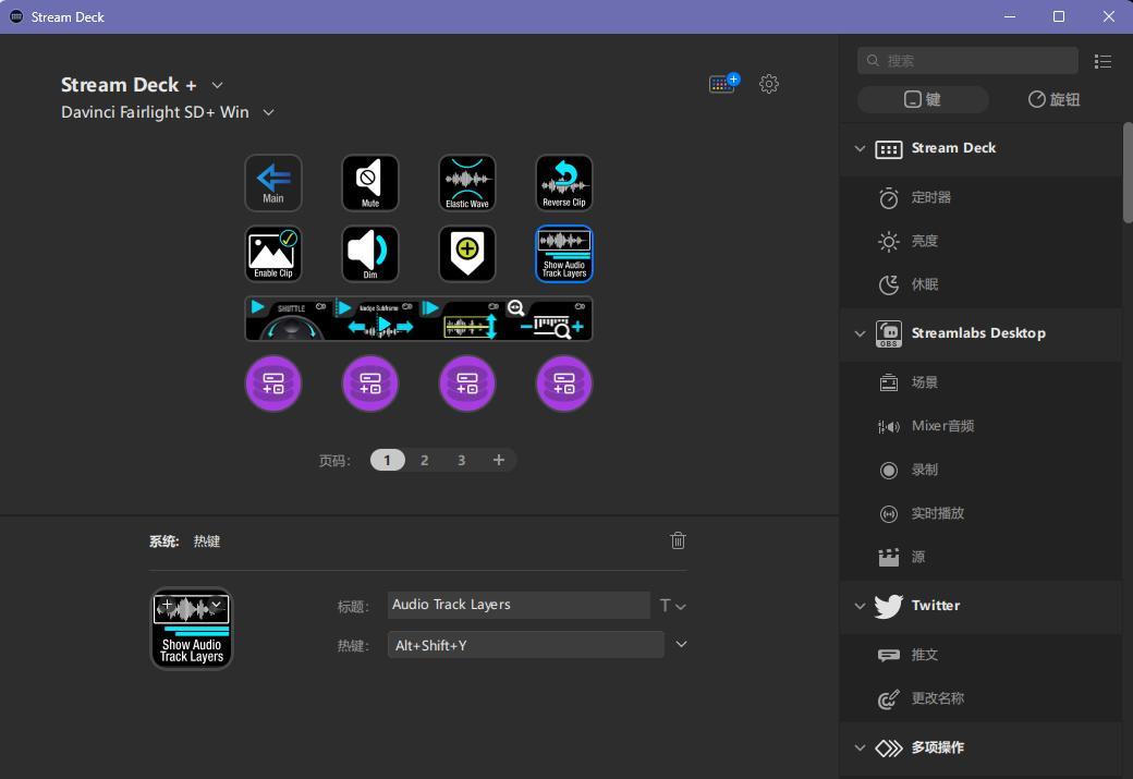 需要注意的是,sideshowfx提供的免费预设,都是针对纯按键版的Stream Deck,旋钮和触屏功能暂时没有免费版的插件支持。所以我买了一套达芬奇的预设,虽然打了65折,但是还是花了180,感觉好贵。。。