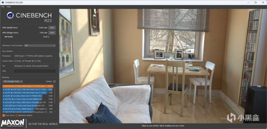 在主流的3D建模渲染输出测试中,锐龙7 7735HS的8个全规格大核满载持续输出十分稳定,性能达到了主流8核移动处理器的上游水平。由此也可以看到,锐龙7 7735HS完全可以胜任一些3D渲染输出的生产力工作。