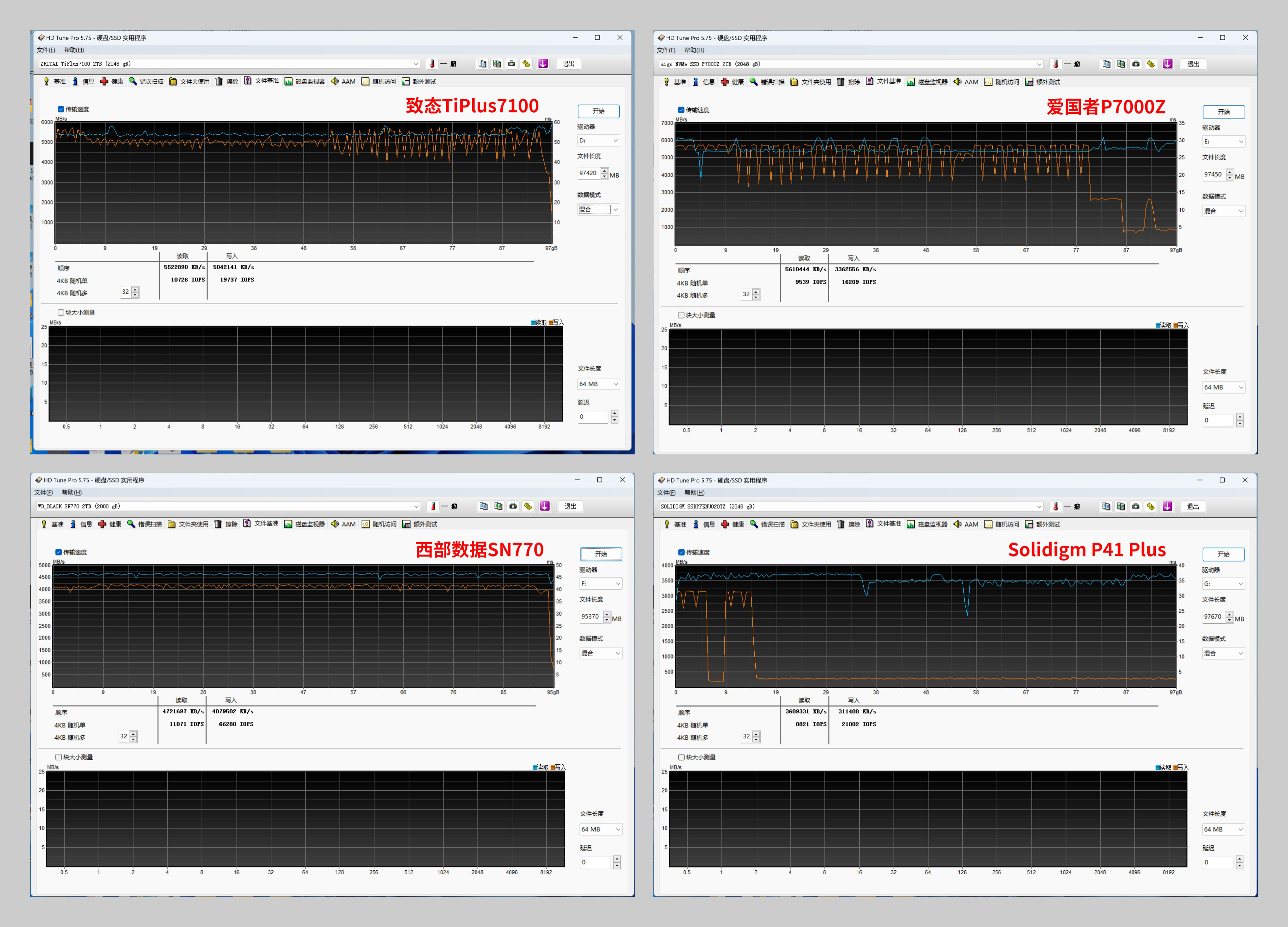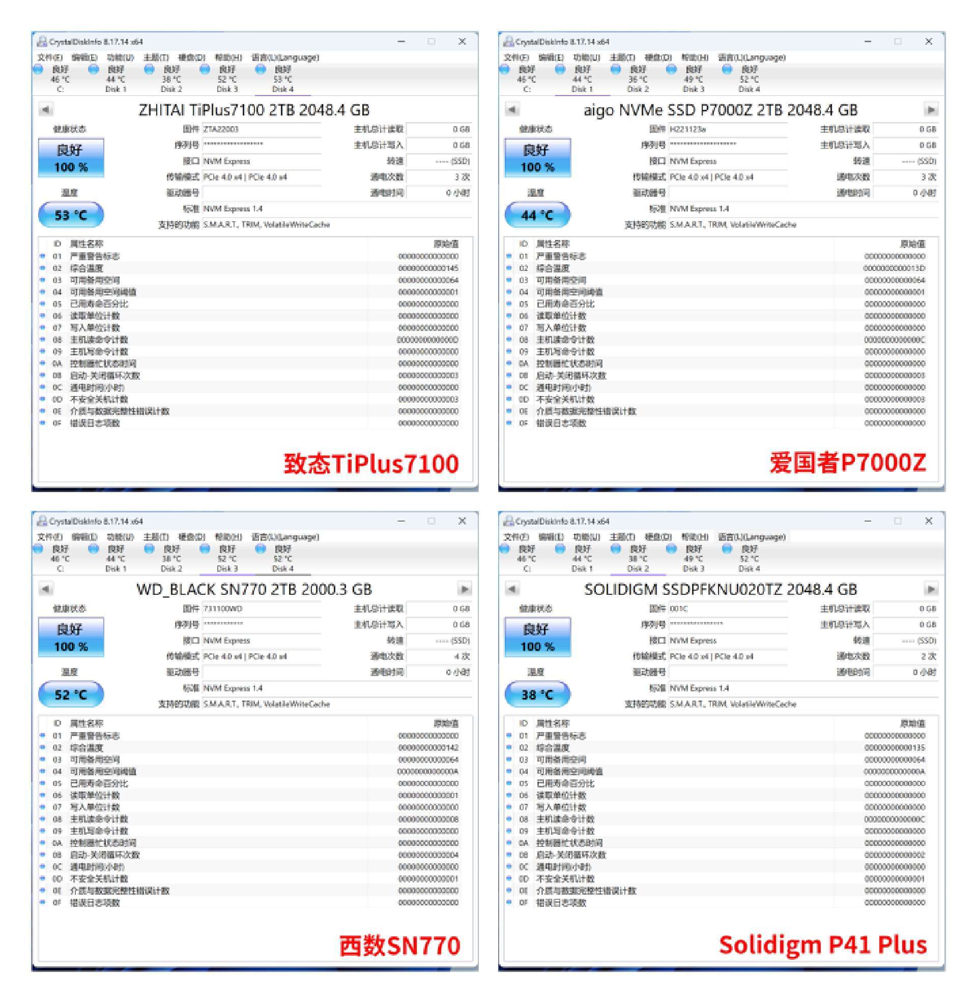 时值618大促期间,想必还有不少朋友准备趁此机会入手固态硬盘,所以本次我挑选了致态TiPlus7100、爱国者P7000Z、西部数据SN770、Solidigm P41 Plus这4款呼声较高的产品进行详细横评,希望能对大家的选购起到参考作用,同时也想告诉大家,国产SSD现在真的不比海外产品弱,完全可以放心入手。