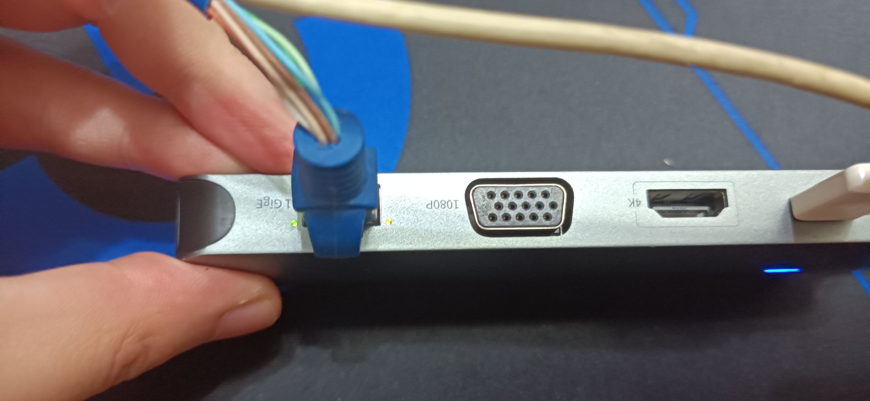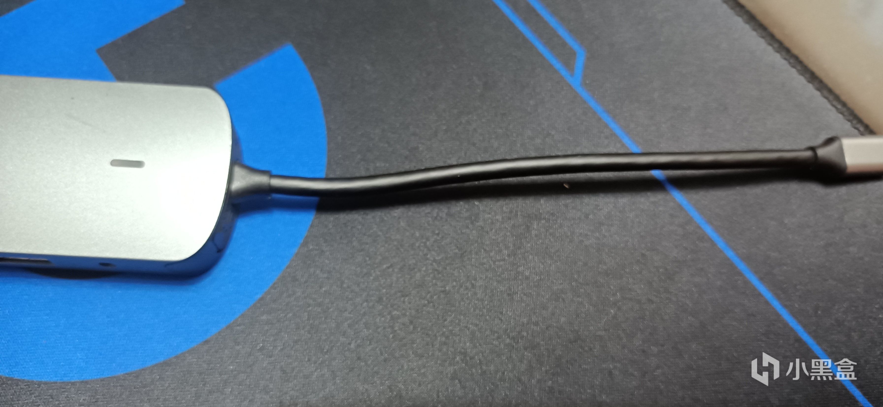 拓展坞映入眼帘的就是它那长长的尾巴啦,大概是20cm的typeC数据线。说长不长说短不短。如果是笔记本电脑的话,拓展坞放在电脑旁边非常方便,可以随时更换接口;但是如果笔记本周围位置比较拮据,数据线支持不了那么拓展坞需要放更远的地方,就可以选择别的线长。