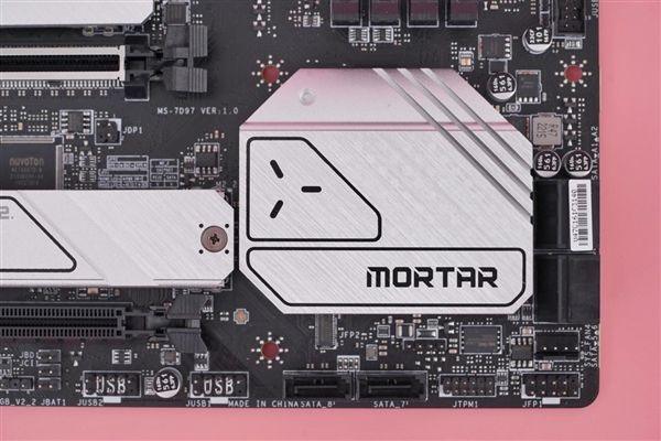 主板爲mATX規格,尺寸是24.4*24.4cm,整體PCB是黑色的,上面覆蓋有大量的銀白色的金屬覆蓋件,且金屬覆蓋件的表面有非常細緻的處理。