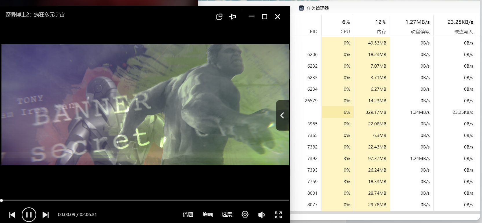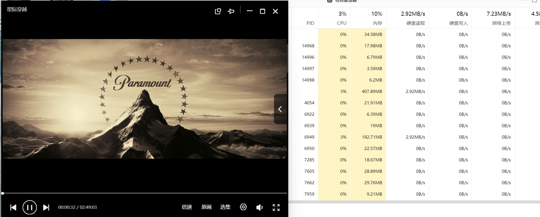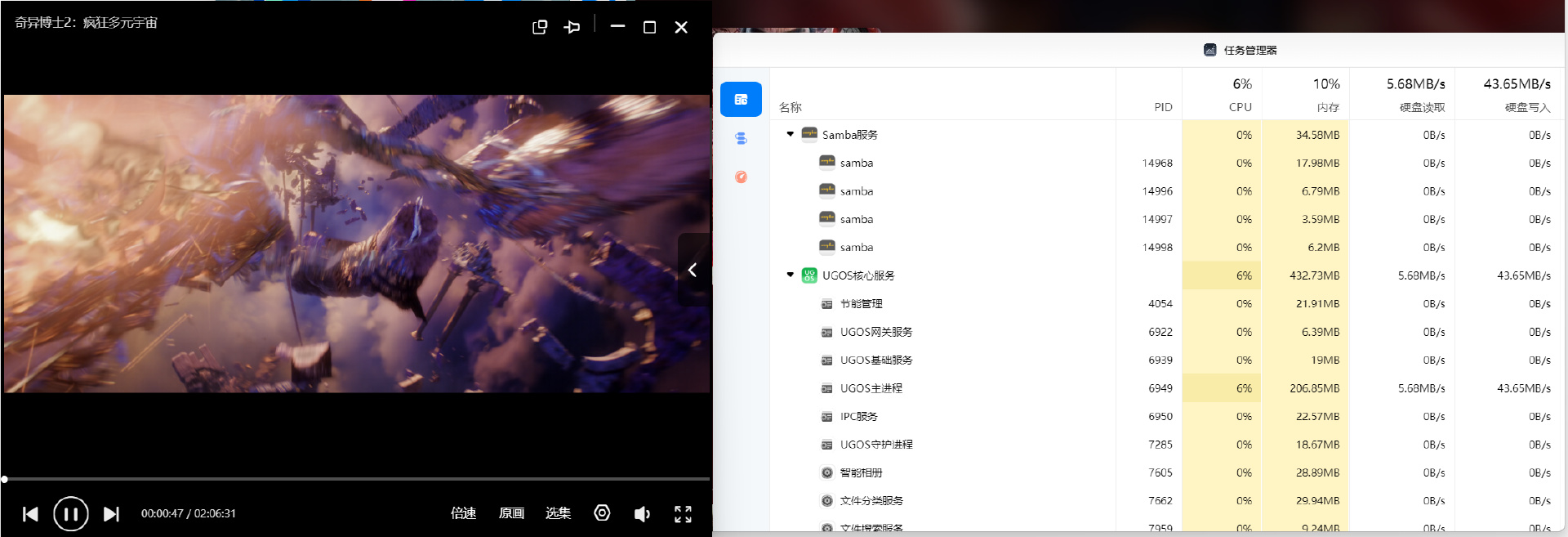 接下来我使用绿联DX4600 Pro与绿联DX4600同时解码同一个电影,来看看CPU占用与内存占用。