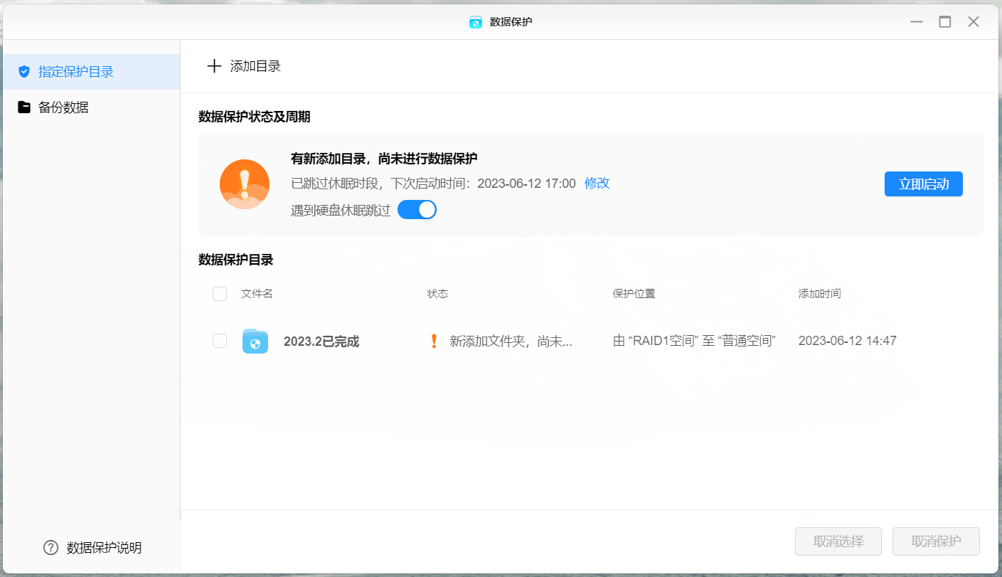 绿联云NAS在有多个存储空间的使用下,还可以使用数据保护功能,对重要数据进行二次备份。
