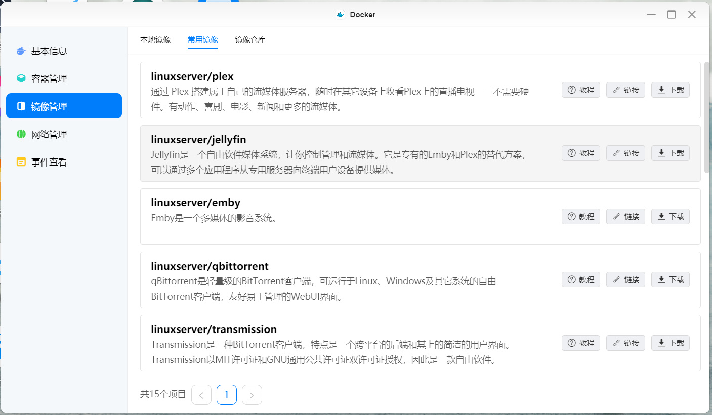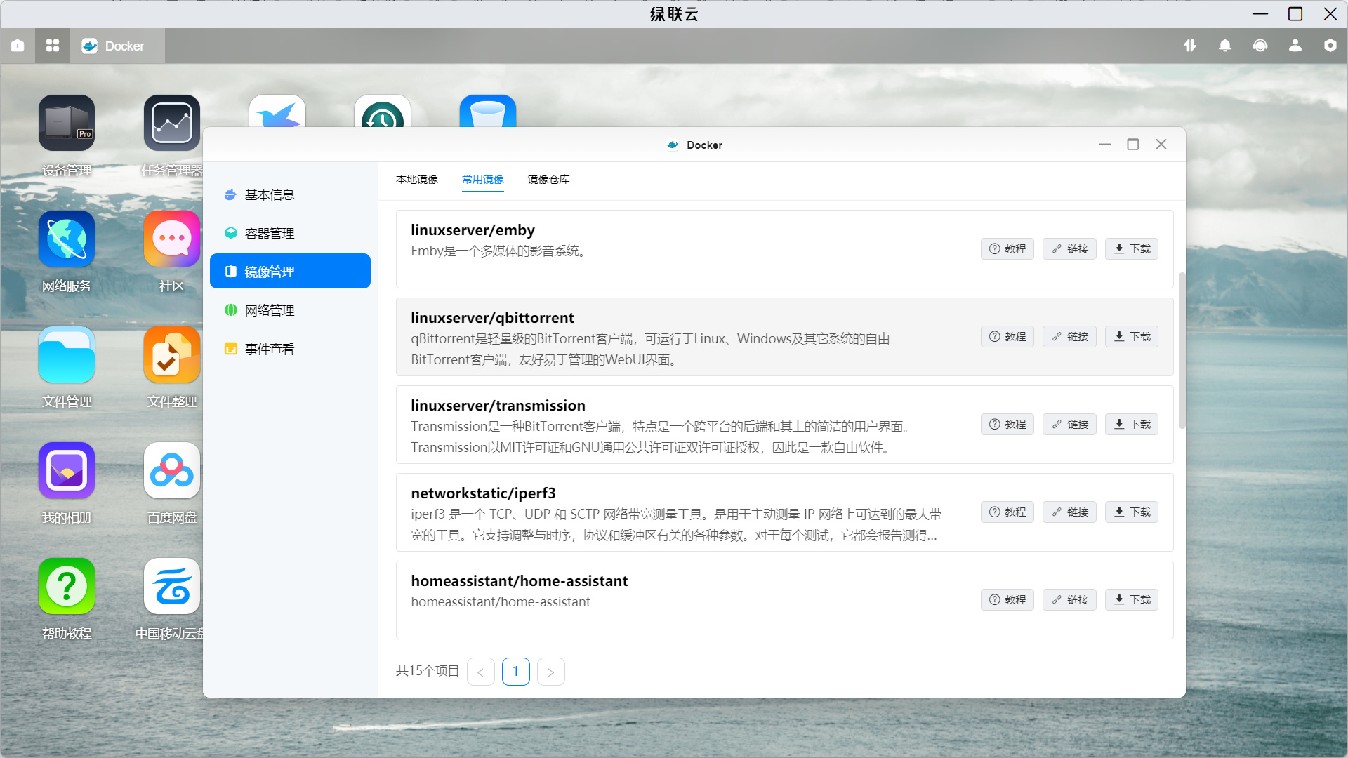 绿联提供了常用镜像库,而且这个镜像库里面的每个镜像还提供了教程,照着抄就行,部署非常简单。