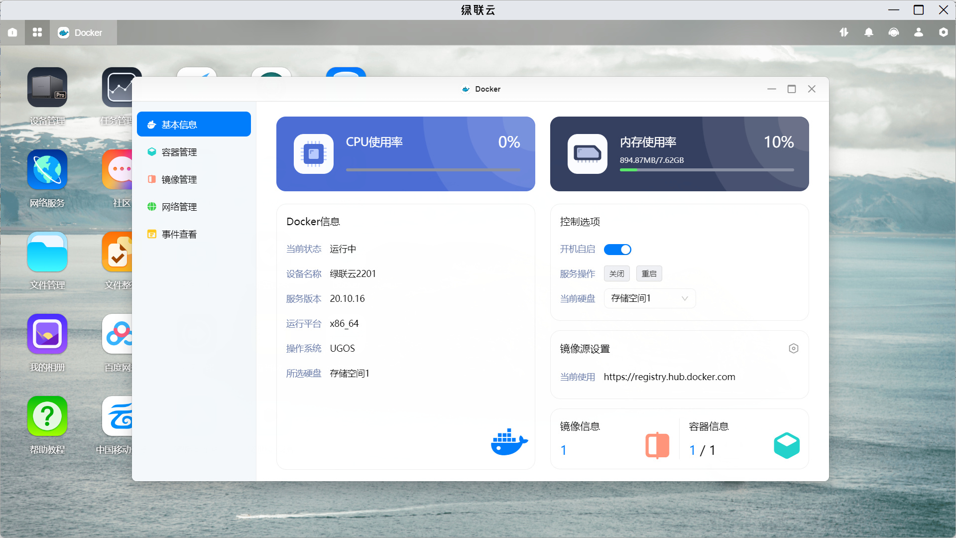 绿联关于Docker部分我之前也和大家聊过很多,今天再来说说。绿联把Docker的思路理的特别清晰,使用体验也比其他传统NAS的操作略微简单,提供的2项分别是容器与镜像。当玩家理解镜像与容器的关系之后就可以变得很简单,镜像可以理解为是一个需要容器承载的工具,将其放入容器中就可以正常运行。