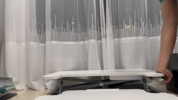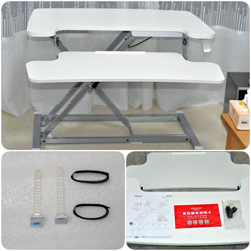 这款升降台采用的是气弹簧助理设计,而且没有档位调节,加上双台面设计可以放置更多的办公用品。