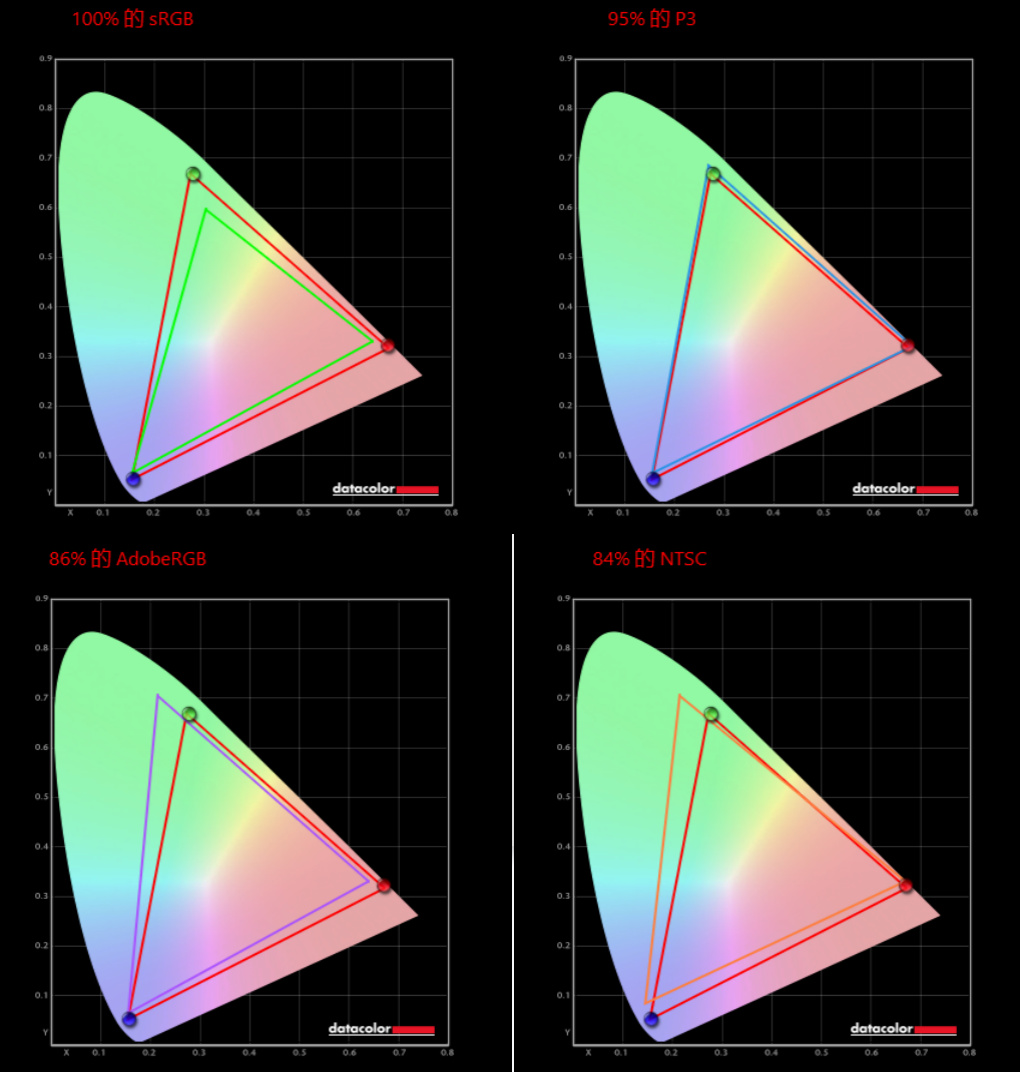 红蜘蛛较色仪显示这款显示器拥有超过100%的sRGB色域,95%的DCI-P3色域,广色域可以为用户输出更加卓越的对比度和色彩。