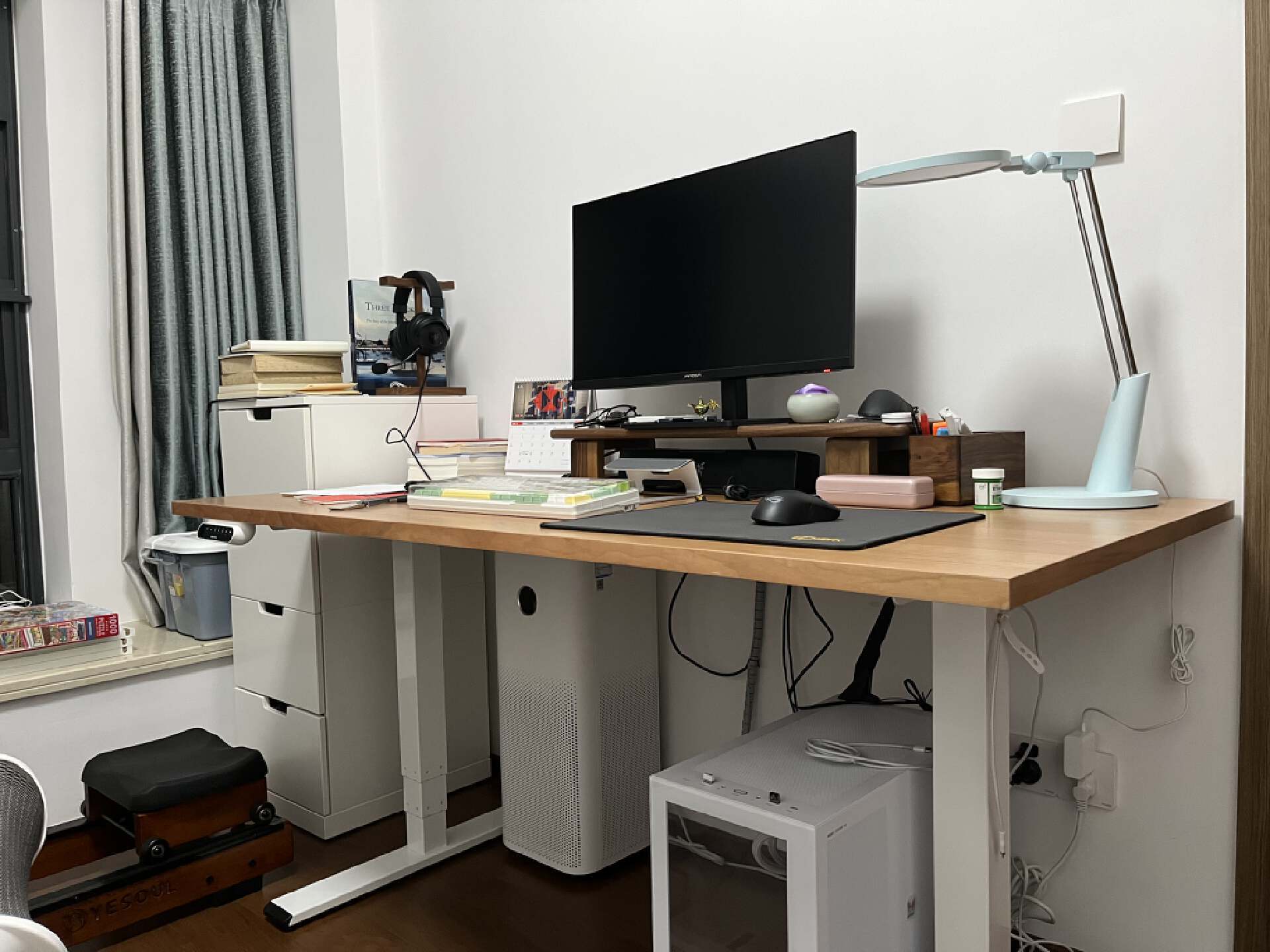 618期间如果书房有升级改造需求,升降桌必不可少,乐歌E5S就是我前一段时间给书房刚升级的一个升降桌,双电机、100千克高负重、实木桌面让你的书房更加有科技感。