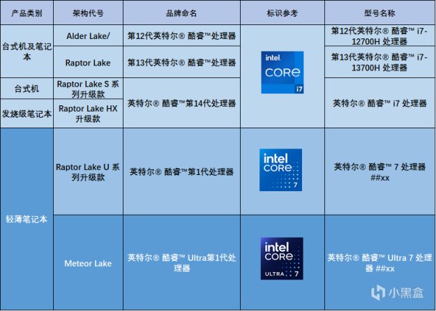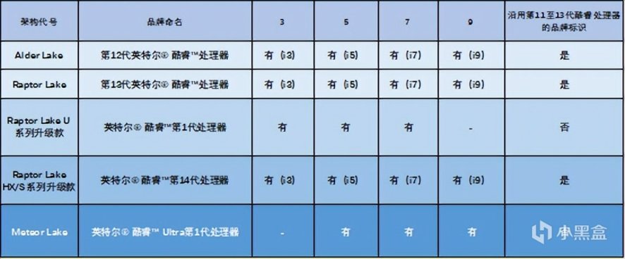 簡單總結,酷睿在筆記本的命名規則發生大變化,但臺式機命名無變化。其中,新架構Meteor Lake使用新品牌酷睿Ultra,Raptor Lake-U變成酷睿,Raptor Lake Refresh HX和S版成爲14代酷睿。