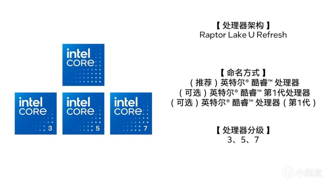 首先是U系列迴歸,屬於Raptor Lake U升級款,但也不叫第14代酷睿U系列,而是直接叫酷睿處理器,官方稱呼是以下三選一,可以看到U系列成爲基礎款的酷睿處理器,包含酷睿3、酷睿5、酷睿7: