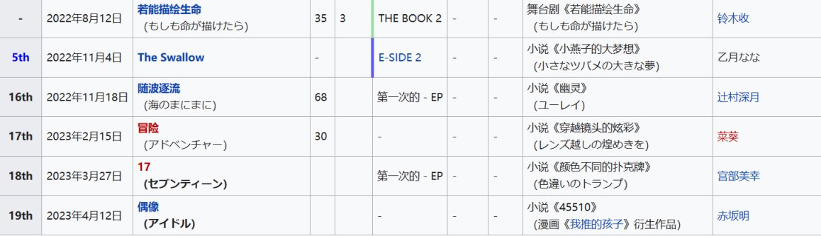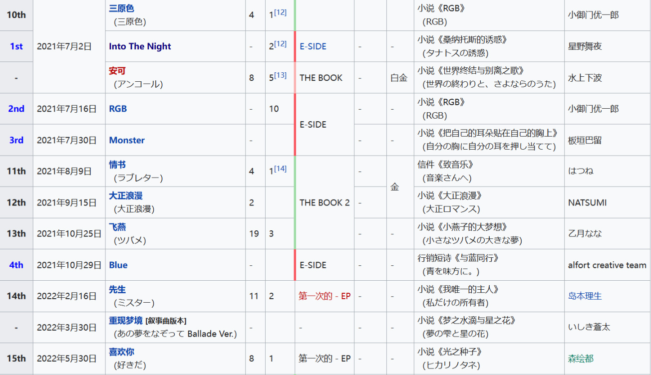 表格右側有每首歌改編的小說名字,感興趣的盒友有空可以去看一下,都挺有意思的,看完小說再聽歌會獲得完全不同的體驗。