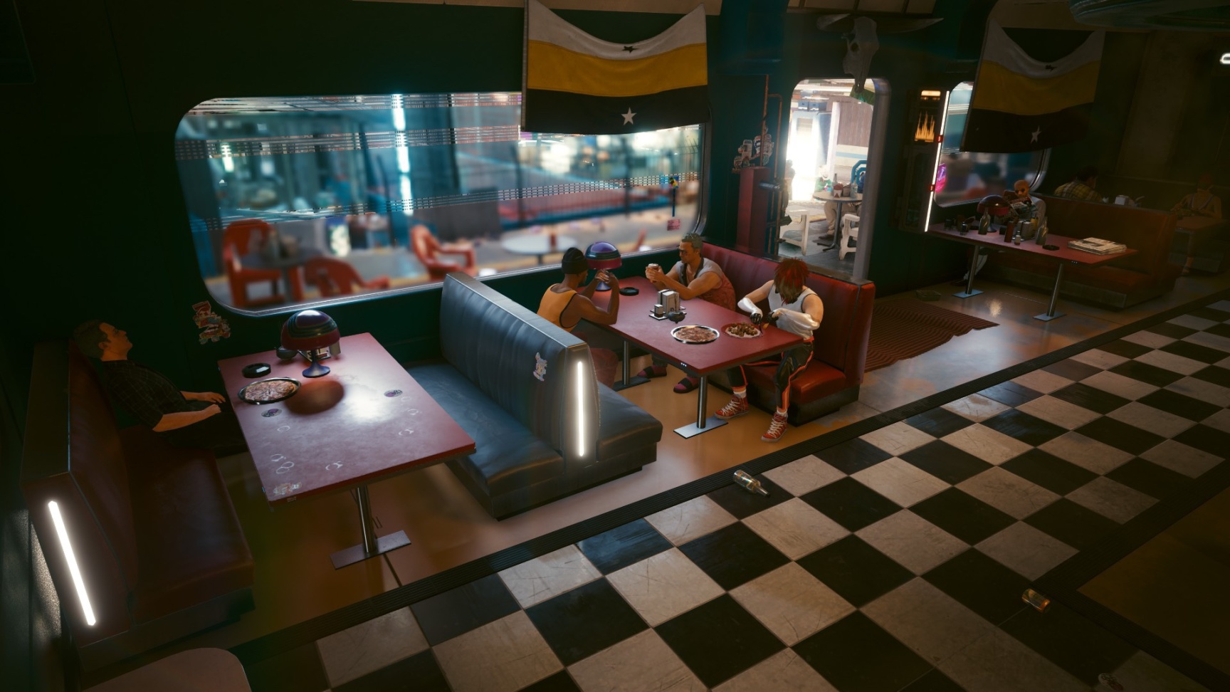 這家飯店真是人才濟濟啊,聖多名戈最強中間人、荒坂公司高層、V、強尼•銀手、竹村五郎。