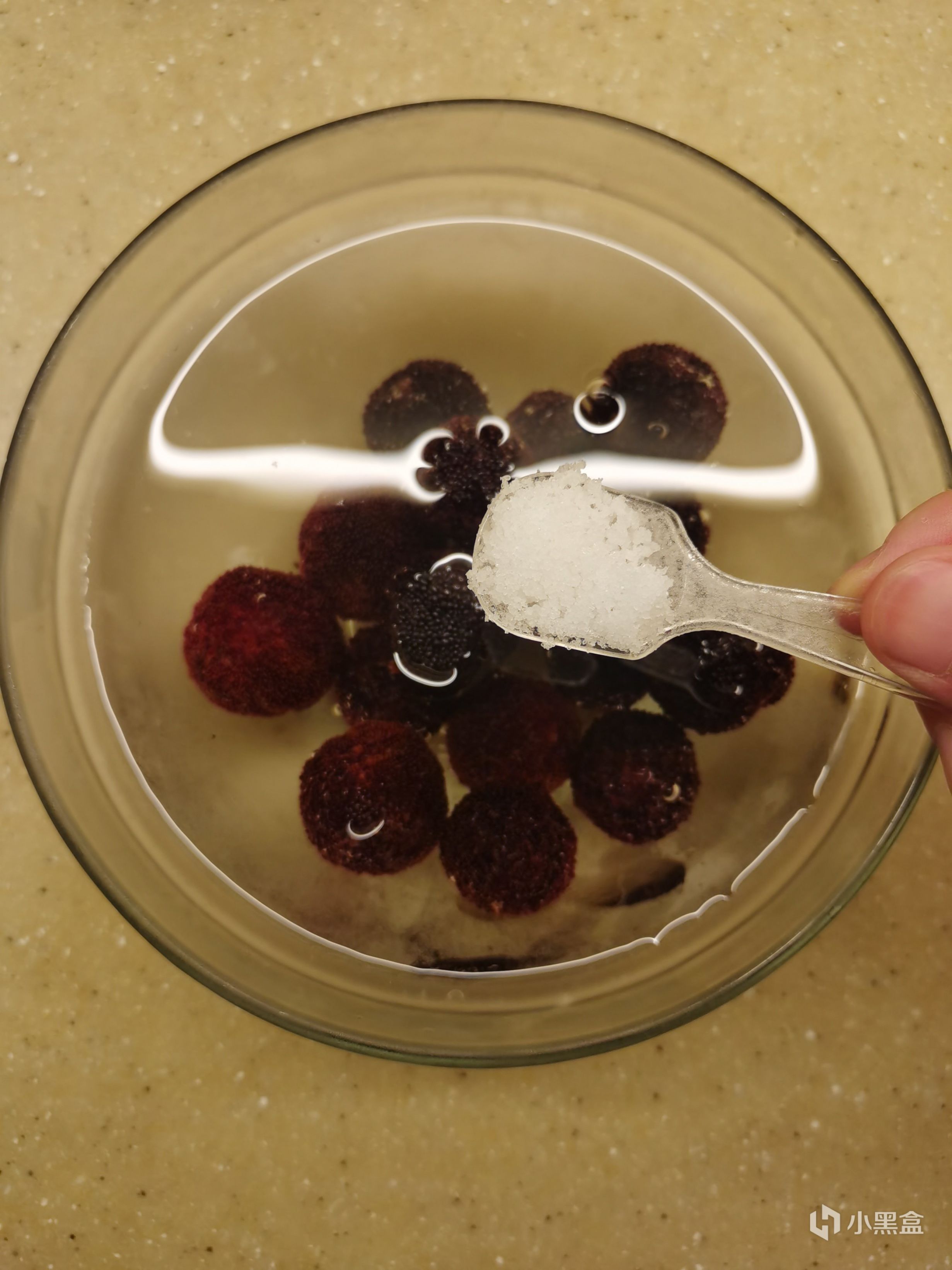 将杨梅先冲淋一遍之后放入盐水之中浸泡10分钟