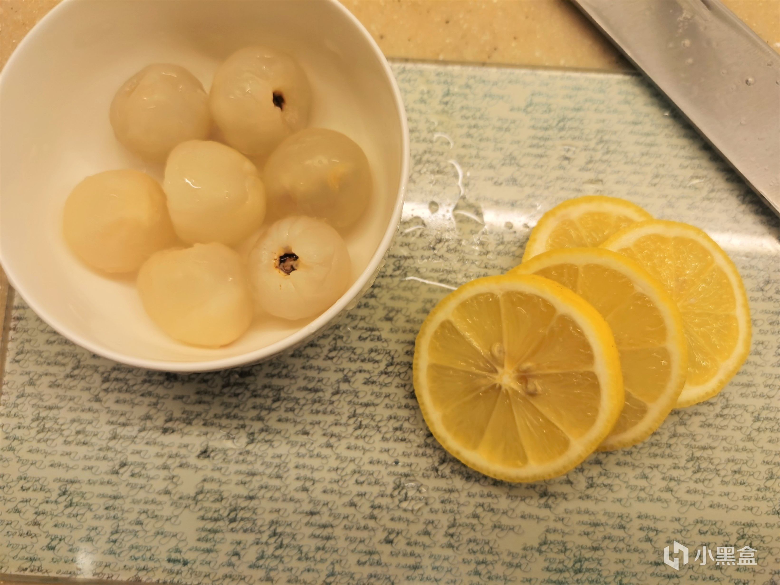 在杨梅浸泡的这段时间,我们可以将荔枝和柠檬进行处理,我们将荔枝剥皮后将果核去除,然后将柠檬切片,记住要去除柠檬籽(也可以直接购买无籽柠檬)