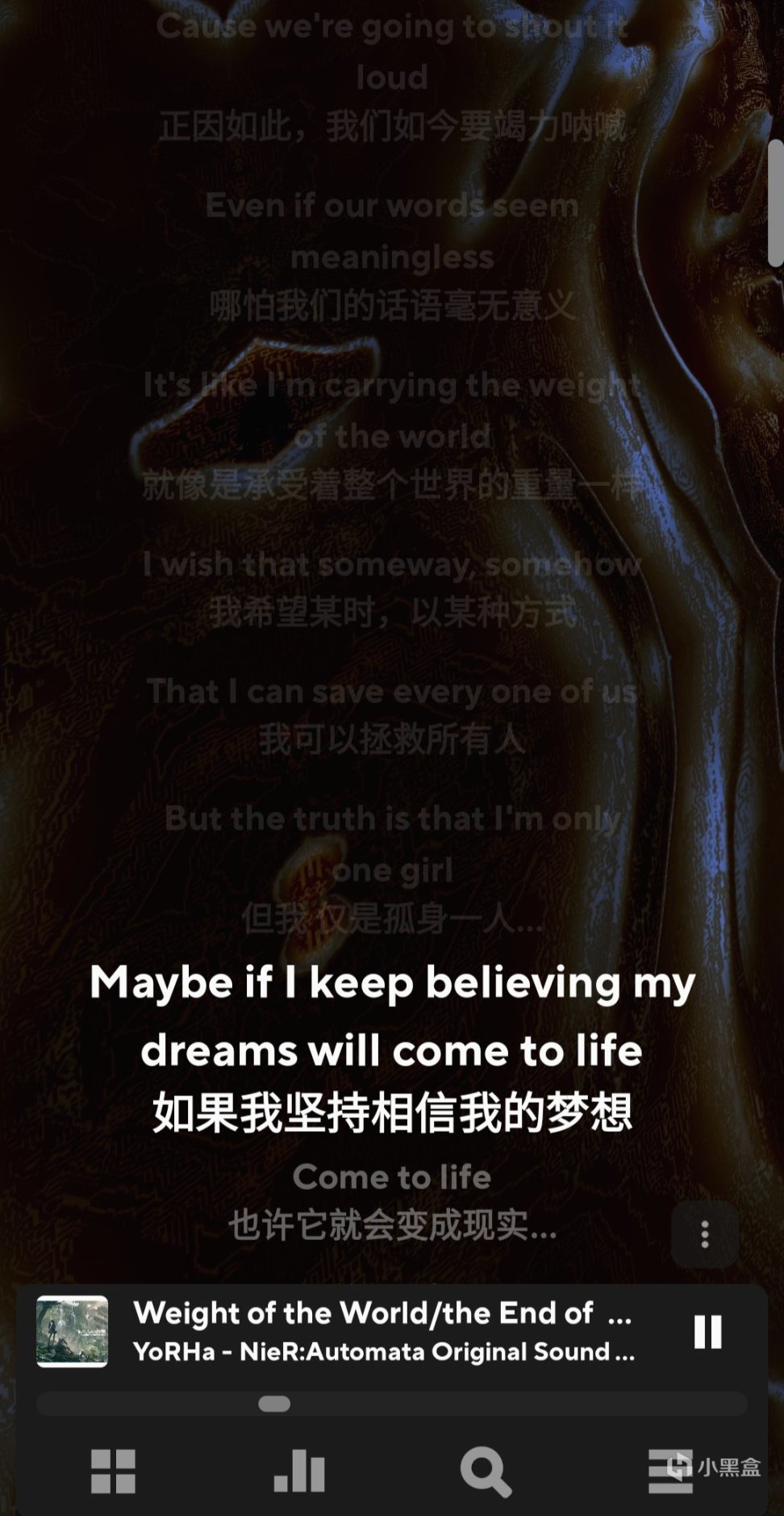 ——你不必獨自承受世界之重,人類將與你共同前行。這是超越時空的力量,通過網絡將每個玩家聯繫在一起。縱使身處四海,此刻我們意念合一。隨着音樂來到高潮,女聲背後是萬千的和聲。那是凝聚的希望,那是人類的榮光。