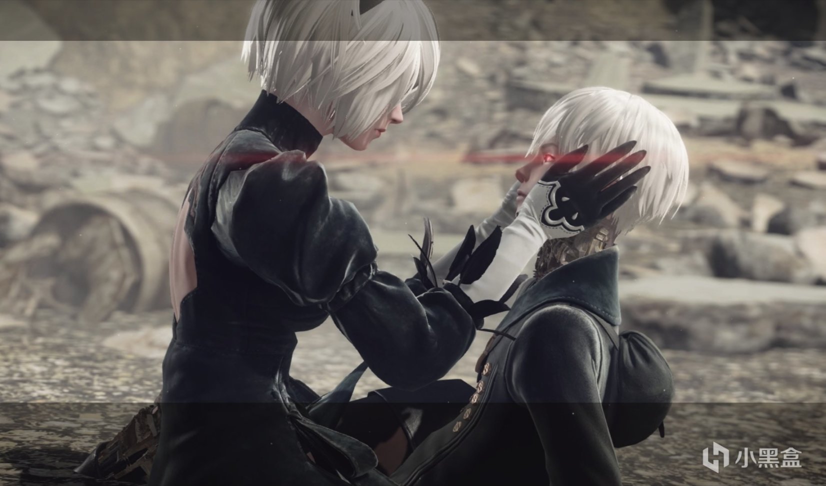 計劃無情地執行着。月球地堡被感染者毀滅,而2b也在戰爭中感染邏輯病毒,被A2幫忙自戕。9s瘋了。他將一切矛盾的根源歸結到機械上,和劊子手A2上。他知道一切,所以爲此痛苦。他嘲笑一切,嘲笑試圖拯救早已不存在人類的A2,嘲笑全部存在的命運是爲了死亡。當A2說出那個他早已知曉的事實,他宿命的一環,提到爲他賦予生命的意義,又爲他加與死亡無盡輪迴的那個女孩,這個男孩才真正絕望了。A2好像在悲憫,明明一直在迴避的事實深深刺痛了他。9s像孩子一般又急又鬧,要毀了一切。