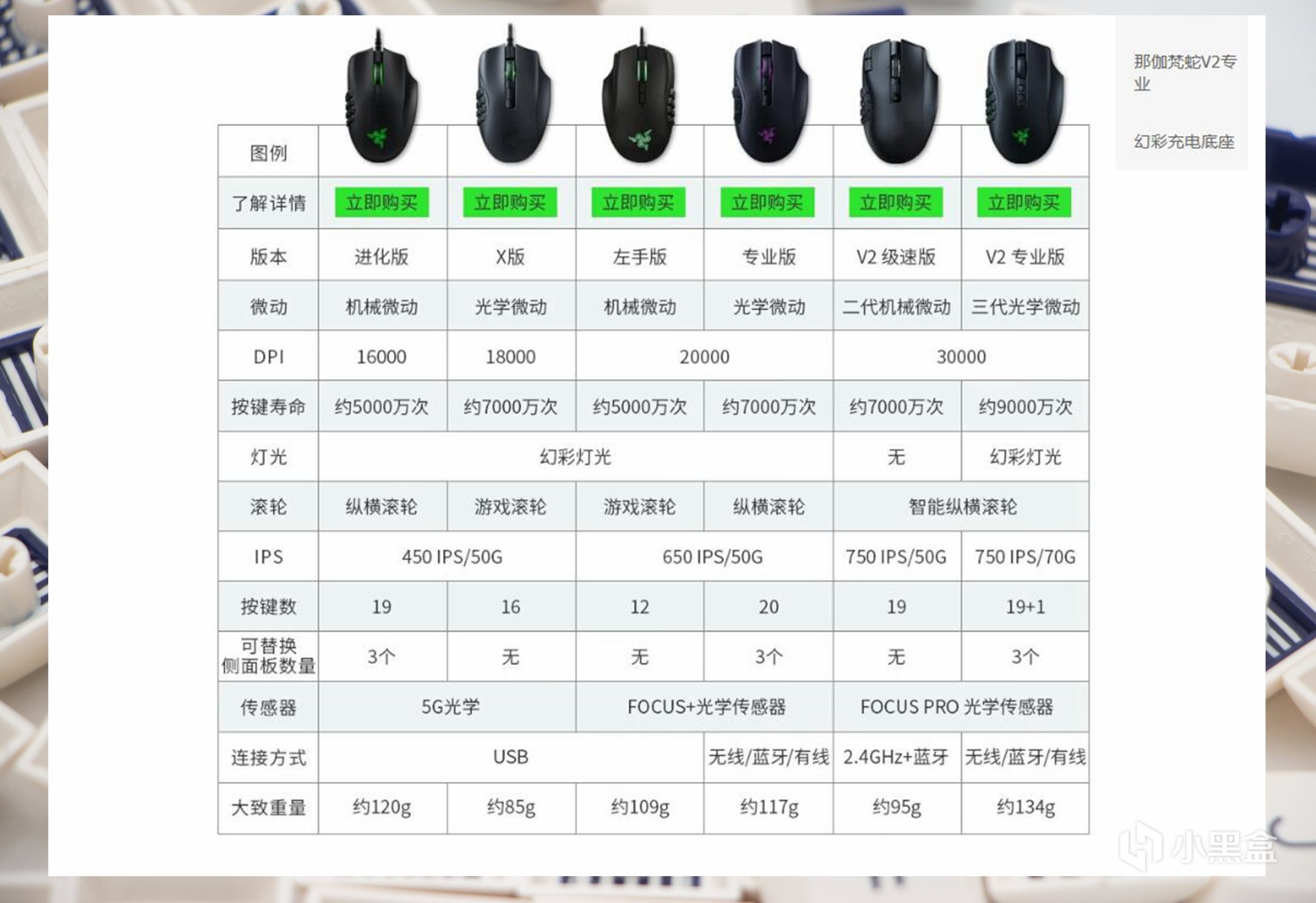 目前在售的巴塞利斯蛇主要是 X 极速版、终极版、V2、V3、V3 X 极速版、V3专业版6款,厘清其中的关键在于将终极版作为标杆,V2是终极版的有线版本,V3则是在V2的基础上进行了滚轮、微动的升级,X 极速版看做是终极版的减配干电池版本,在 X 极速版上小小的升级就是 V3 X 极速版,而V3专业版则是终极版的圆满升级。