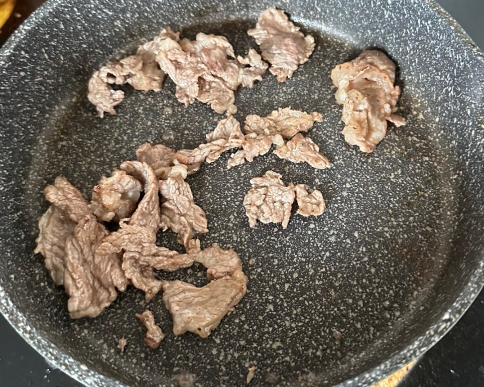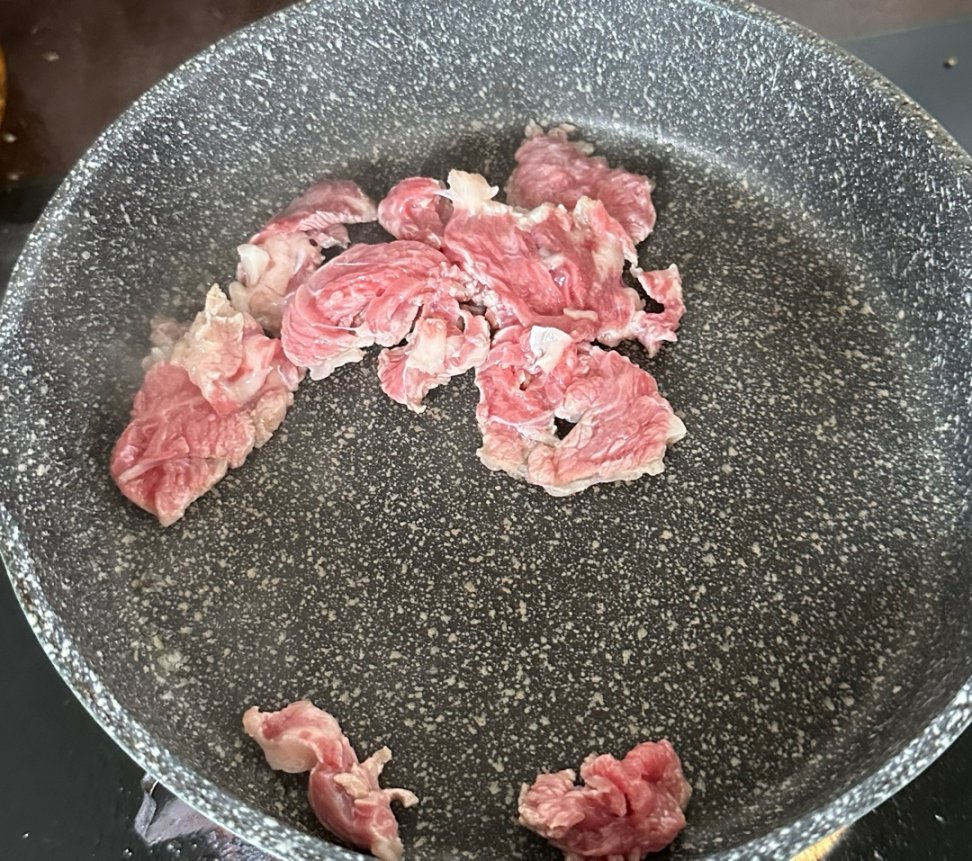 2.牛肉过水,然后用少许油煸炒后捞出备用