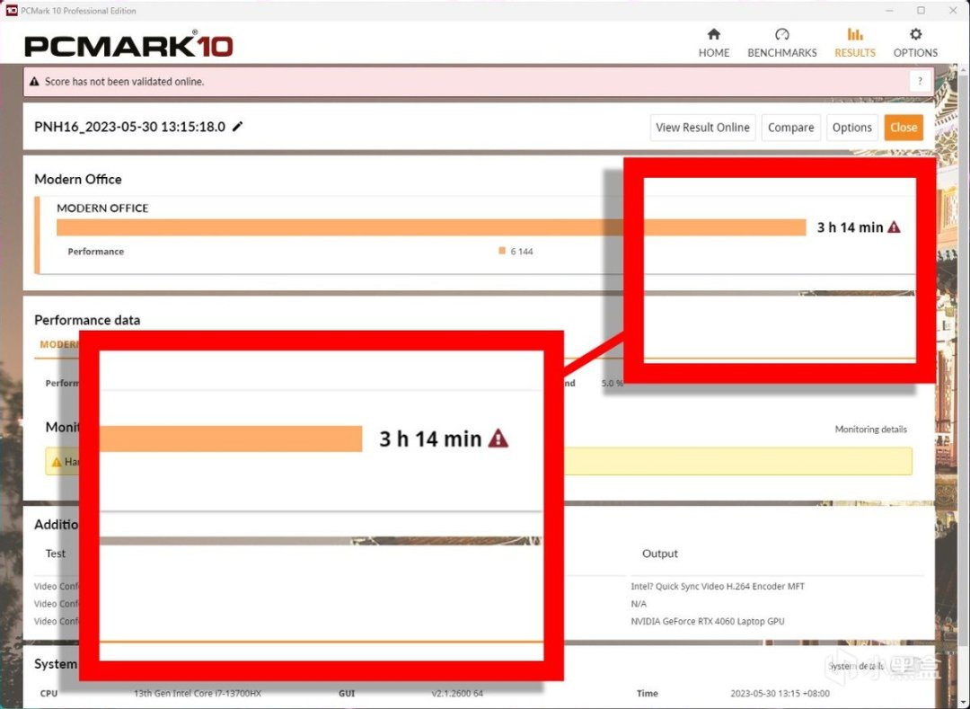 最後再來說說筆記本的續航,在安靜模式、50%筆記本亮度下,掠奪者·擎Neo在PCMark 10現代辦公模式中的續航表現爲3小時出頭,屬於現在16英寸筆記本的主流水準。