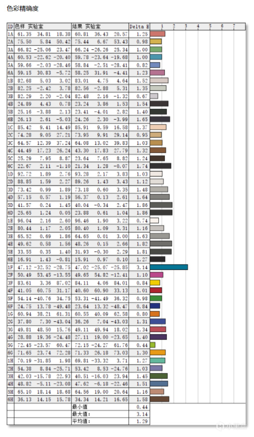 同時屏幕本身的最高亮度可以達到547nites,對比度1280:1,這也是爲什麼掠奪者·擎Neo屏幕看起來討喜的原因之一。與此同時,這塊屏幕的色彩精度平均值控制在△E 1.29。