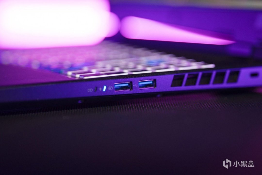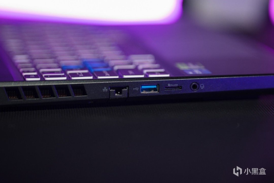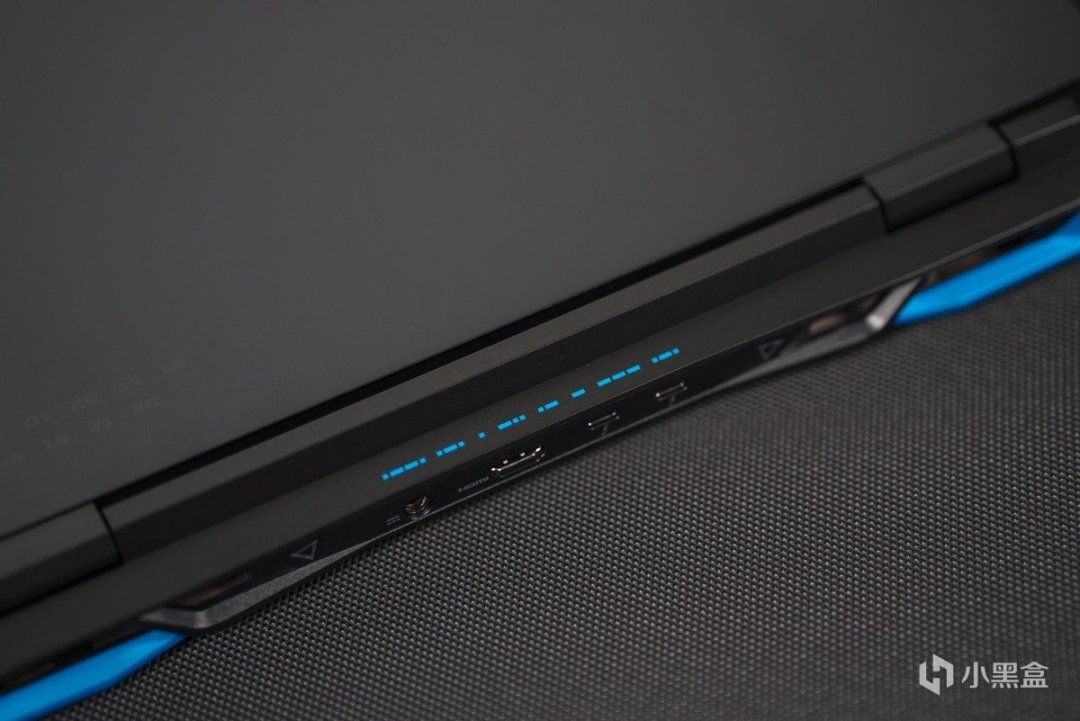 因此可以看到掠奪者·擎Neo給予了足夠多的接口,其中值得好評的便是大方提供了兩個Thunderbolt 4接口,爲後續的擴展提供了很多便利。除此之外,筆記本後側還配備了一個HDMI 2.1接口,左側配備了1個RJ45,1個USB 3.2 Gen1,1個microSD卡槽和1個耳機麥克風接口。右側則提供了2個USB 3.2 Gen1,同時還能看到1個供電指示燈和1個電池指示燈。