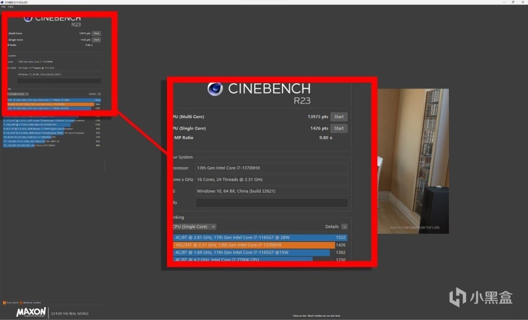 同樣在考驗CPU多線程長時間測試的CINEBENCH R23中,Core i7-13700HX也表現出了不錯的持久力。