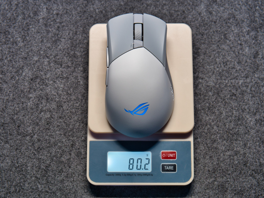 这款鼠标经过轻量化设计后重量只有79g,和罗技的MX Anywhere 3都差不多了,个人感觉作为游戏鼠标非常合适。虽然没有ROG龙鳞ACE AimLab联名版54g的重量那么夸张,但是还是要比普通鼠标轻巧多了,在长时间玩耍后不易疲劳,并且移动时也能更加流畅迅速。