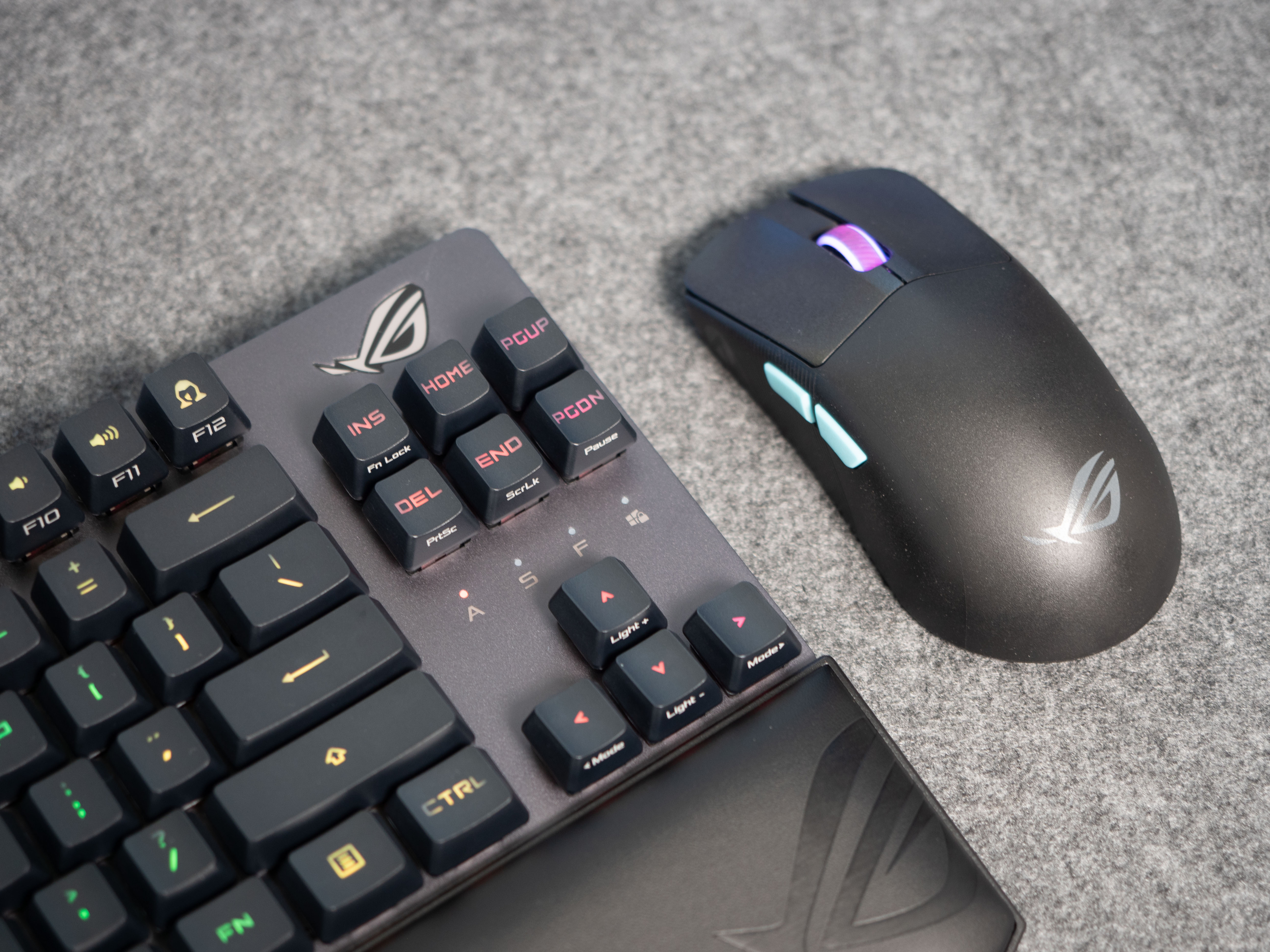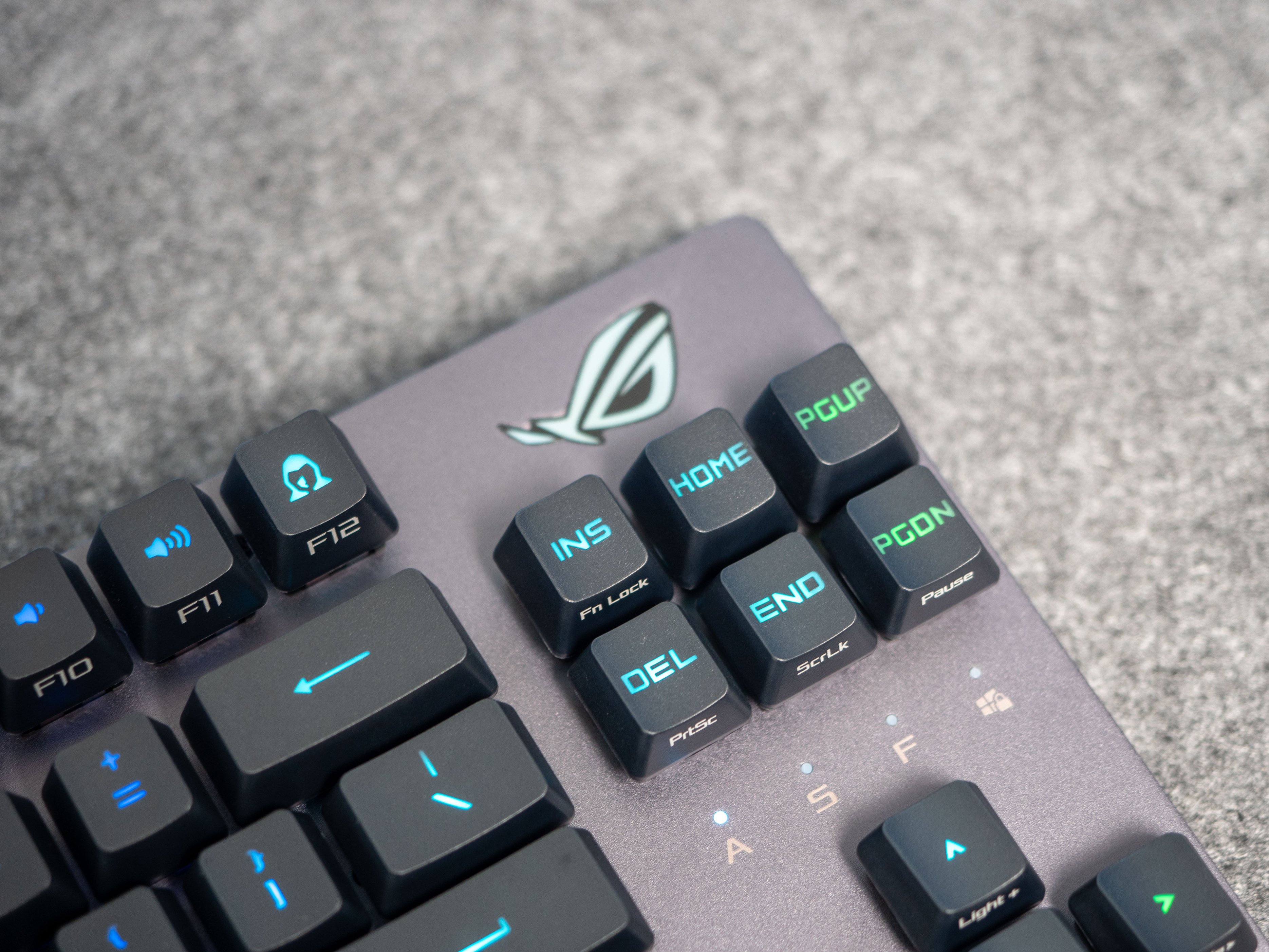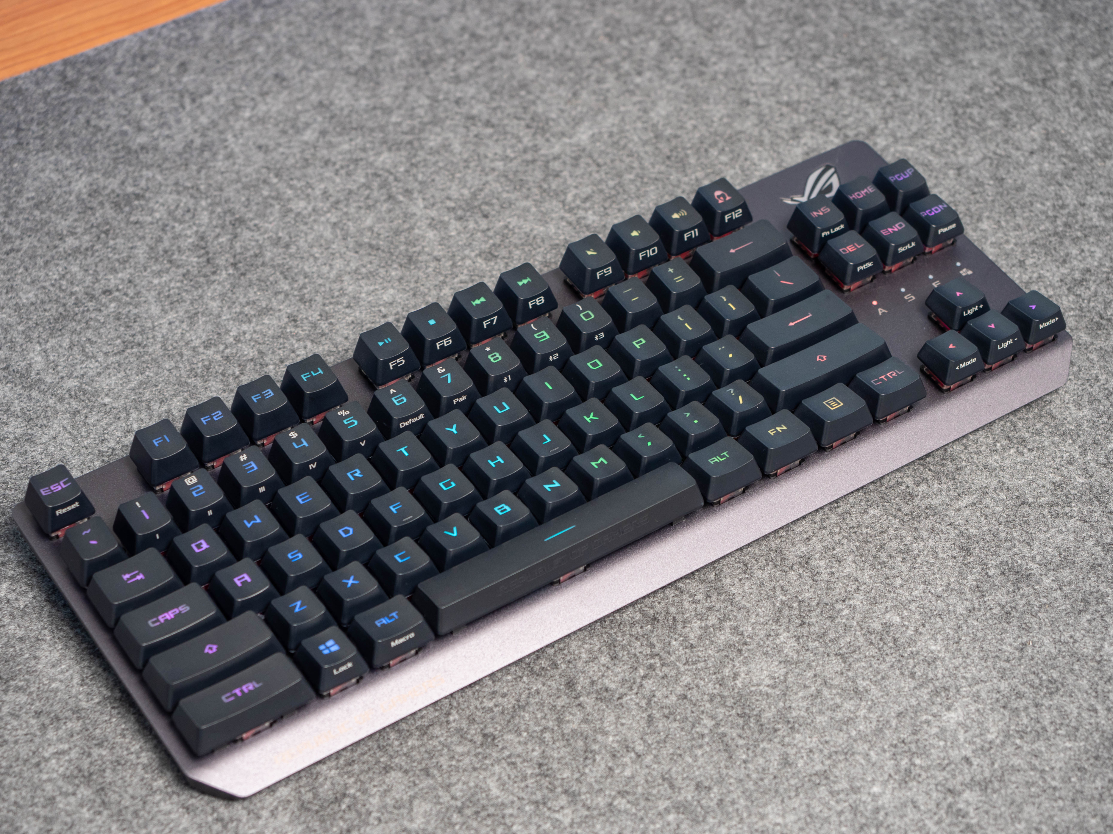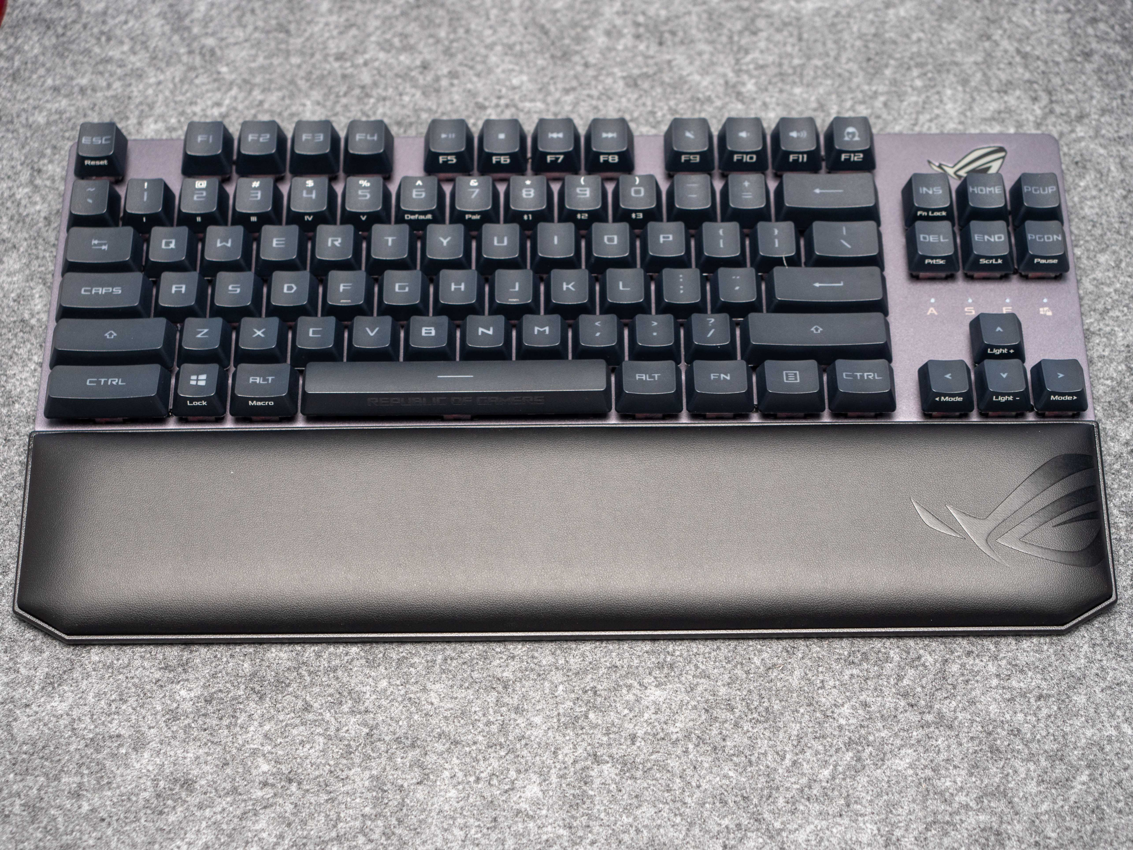 其实上边介绍的办公键盘用来玩游戏也没问题,主要是键帽都不透光,晚上关灯玩游戏时总感觉差了点事儿,所以继收集了ROG的鼠标之后,又没忍住手,趁着618活动入手了一套RGB灯效拉满的ROG游侠 RX TKL 无线PBT版键盘,凑齐了ROG的键鼠套装。