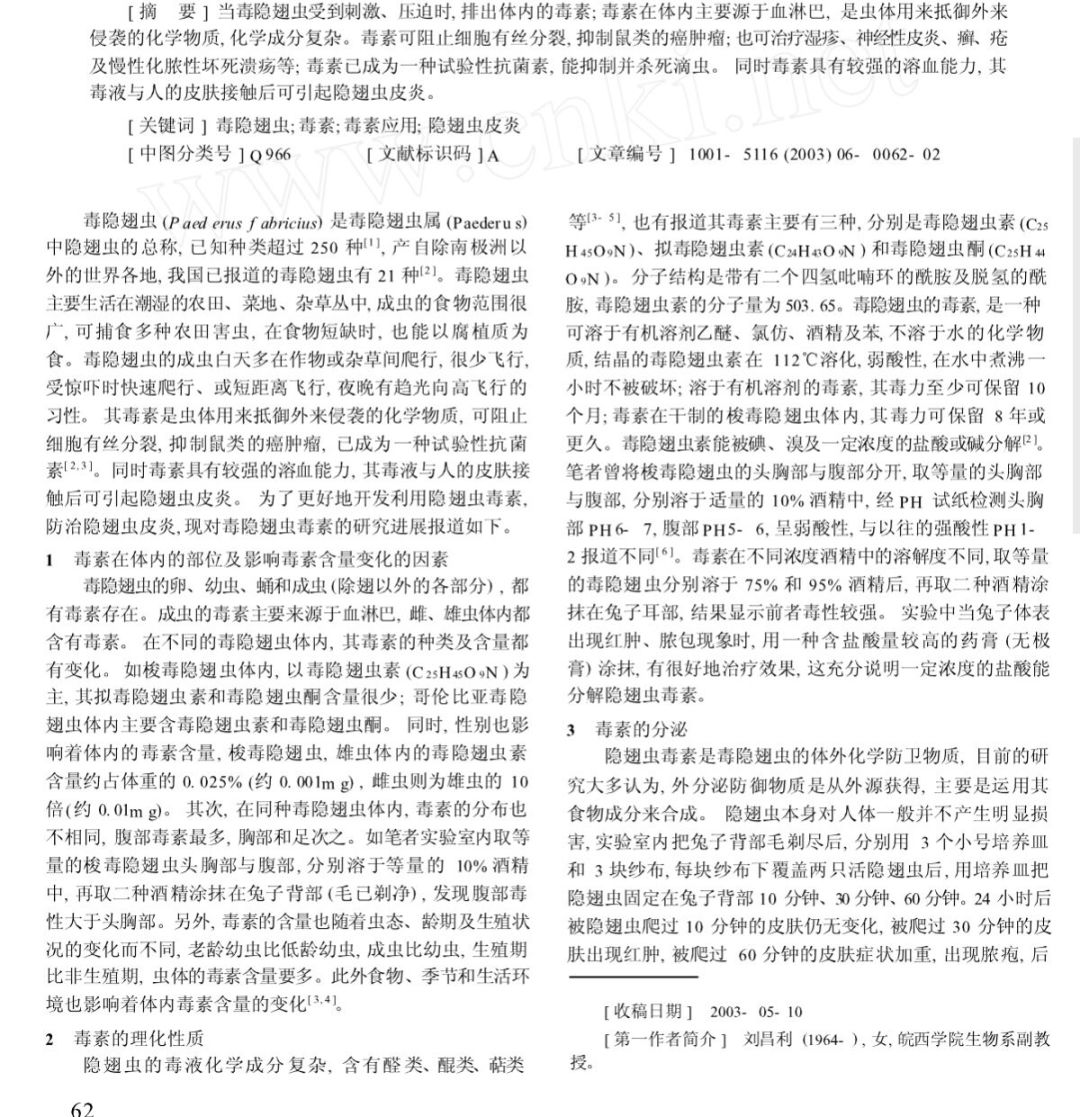虫子本身体液中含有毒素『毒隐翅虫素』