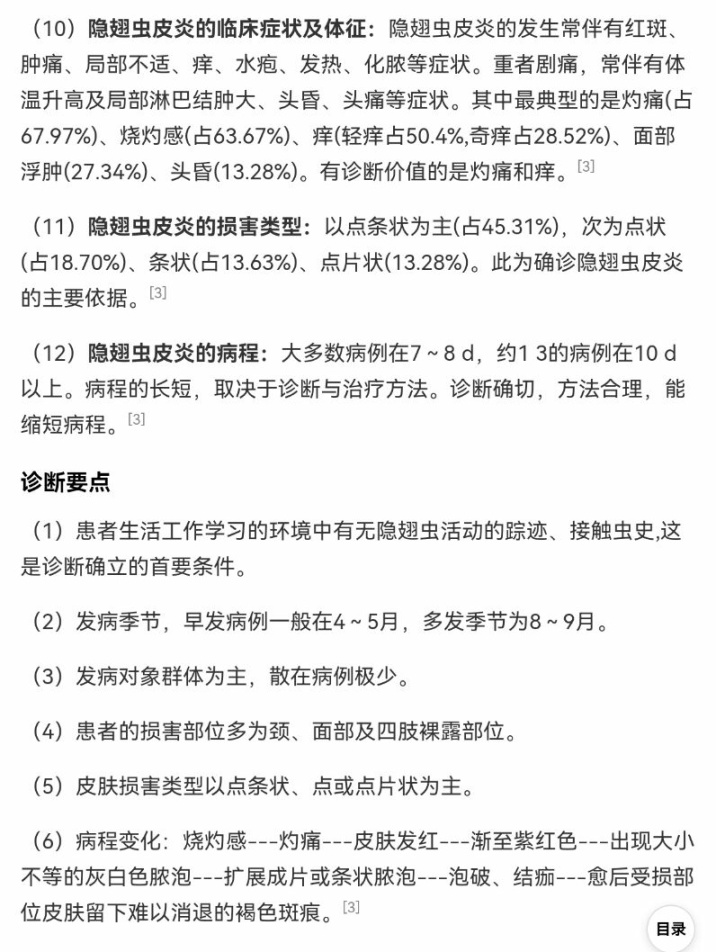 (假装这里有一张患有隐翅虫皮炎的患者图,有点恶心,想看的可以百度,口头描述一下:患病皮肤处严重肿胀,前期有似烫伤的起泡,后期溃烂伤口扩散发黑)