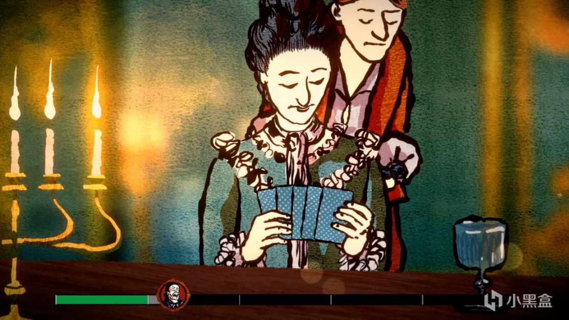 游戏的美术真的很吸睛,但是实际游玩的感觉却很枯燥,出千骗术学了一堆,玩起来就是QTE(快速反应事件),游戏用快速按键、连续记忆纸牌、尽快对齐目标等QTE来考验玩家的反应力和记忆力。