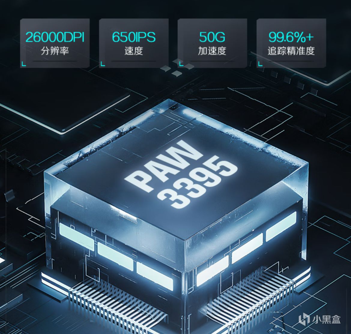 3395 實際爲原相 PAW3395 傳感器的簡稱,傳感器(sensor)又稱爲引擎,爲鼠標的核心元件,負責對移動信號的捕捉與處理,直接決定鼠標性能的高低。
