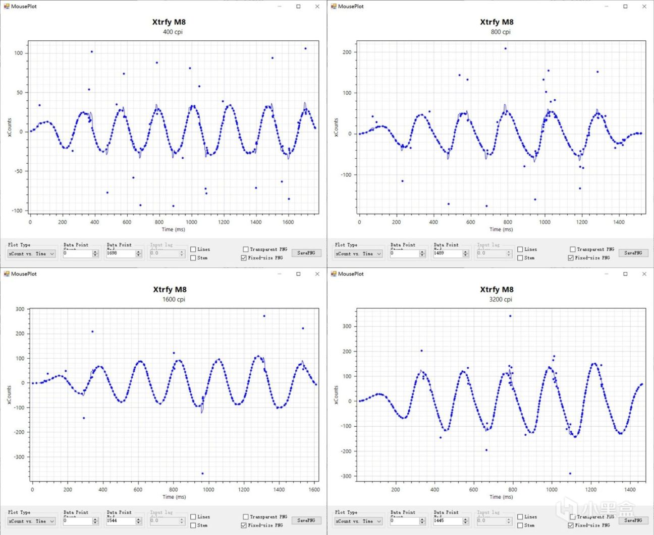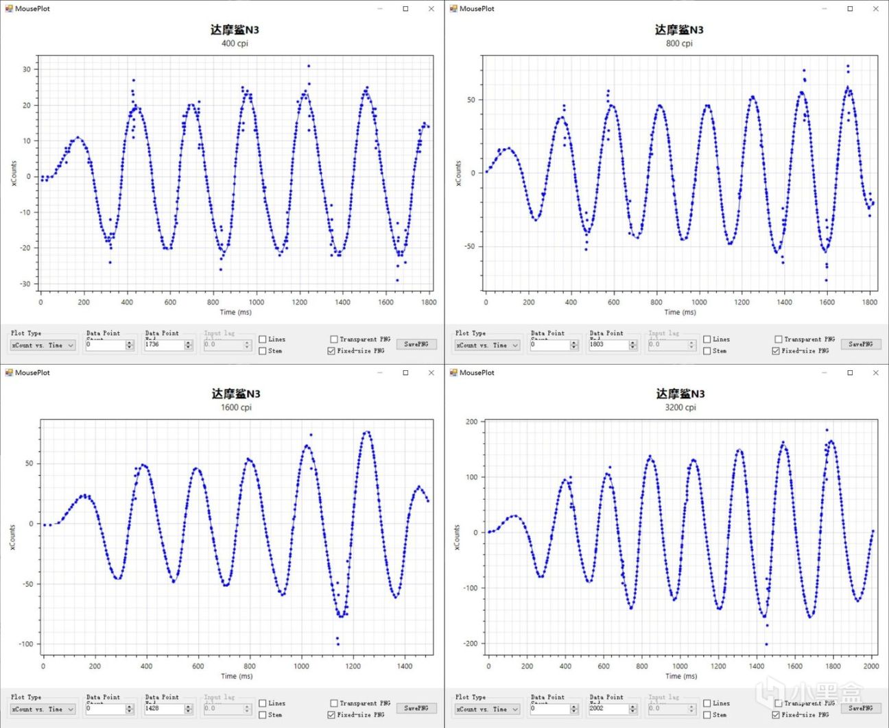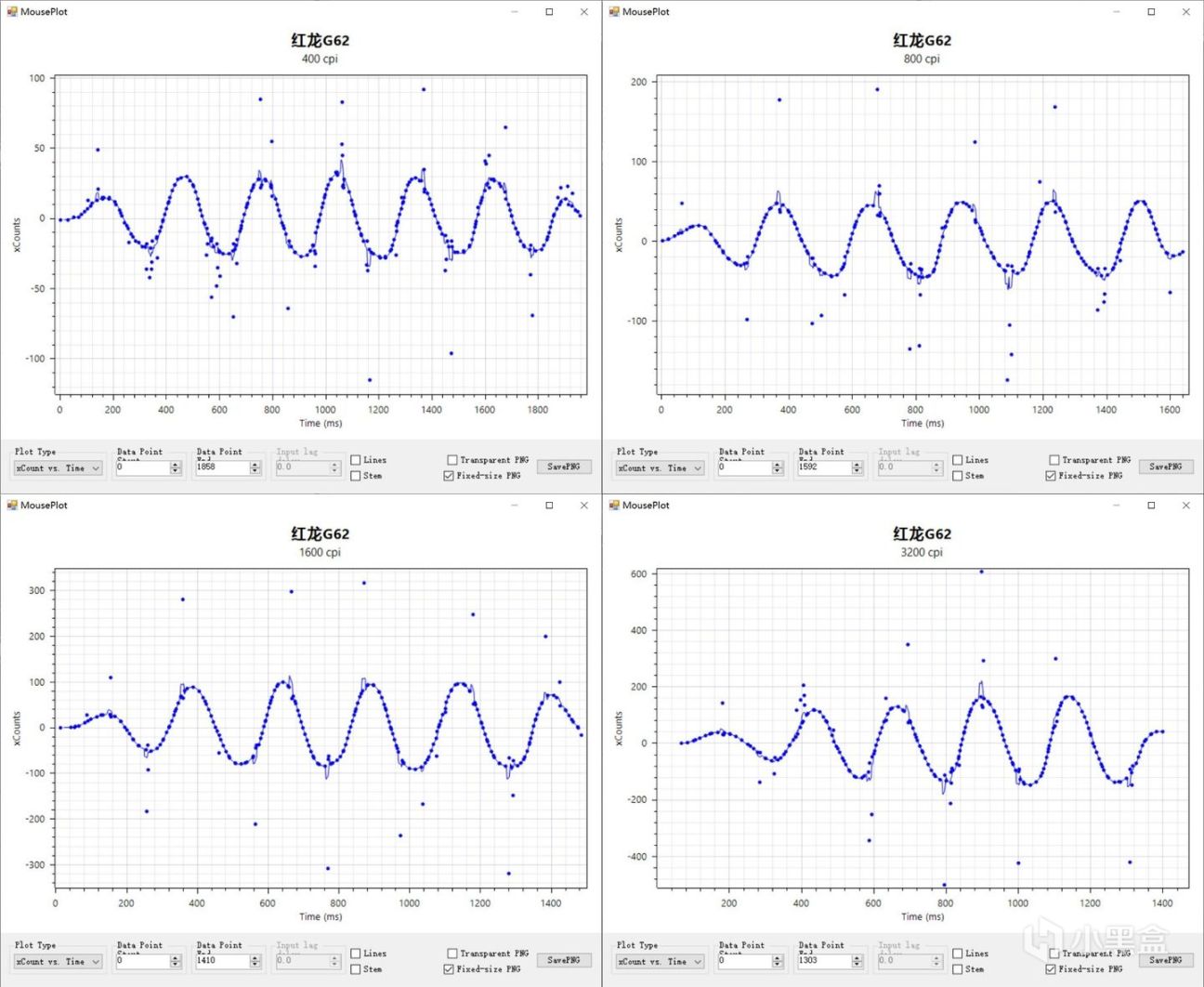 性能上,龍鱗運動追蹤表現非常優異,不同 DPI 下離散都近乎完美。