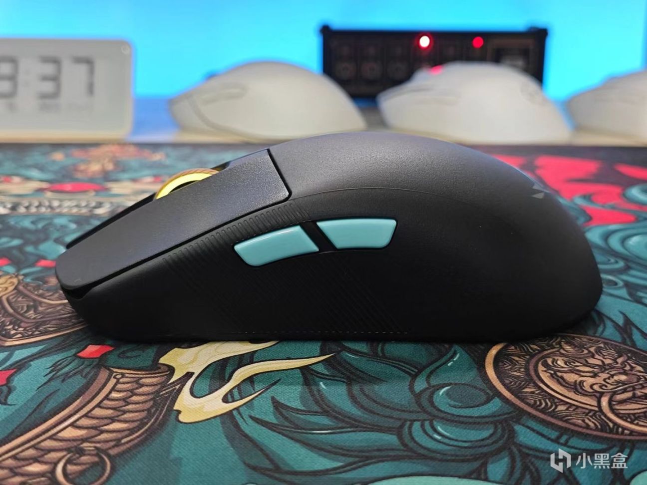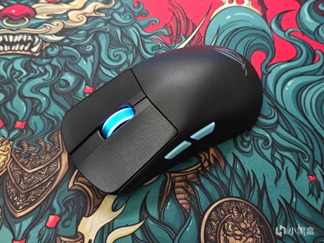 得益於高強度低密度的 PA11 尼龍外殼,龍鱗在做到 54g 輕量化的同時仍然保持着非常高的外殼強度,非國產輕量化鼠標通過做薄外殼來減少重量所能比擬,ROG 還在鼠標滾輪處設計了 RGB 滾輪燈,是目前 60g 以內輕量化無線鼠標中唯一一款有燈效的。