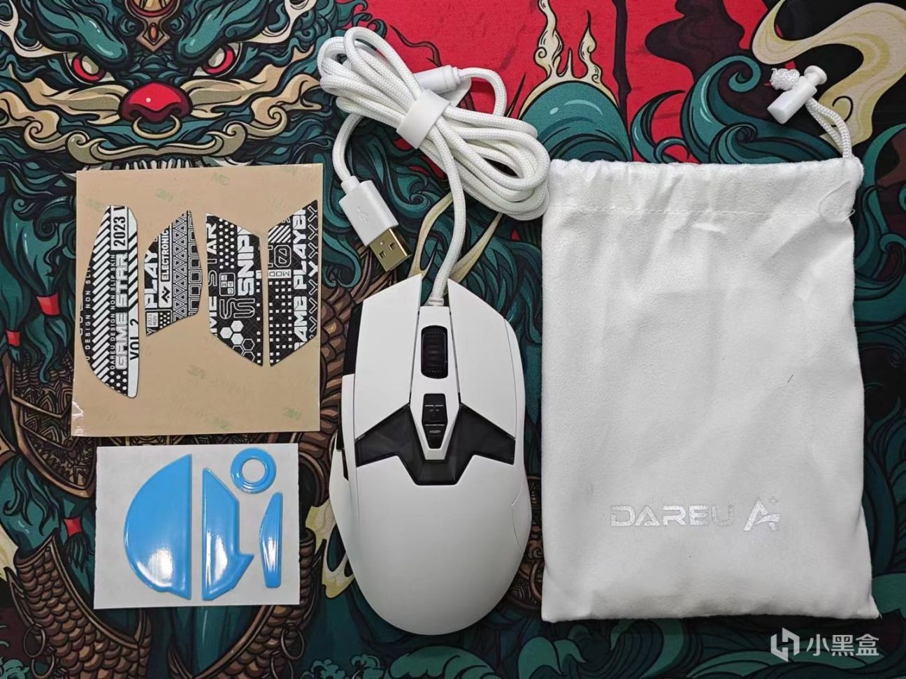 配件上,達爾優給到了收納袋、替換腳貼、防滑貼,作爲有線鼠標的配件基本齊備了。