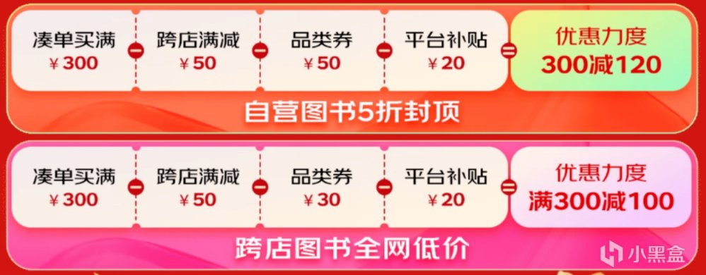 今年618京東圖書到目前爲止,最划算的券應該是滿300減50,可跨店滿減,疊加品類券和平臺補貼,最終是滿300減120,即相當於以前的滿600後打五折,再減120,相當於(180/600)3折!