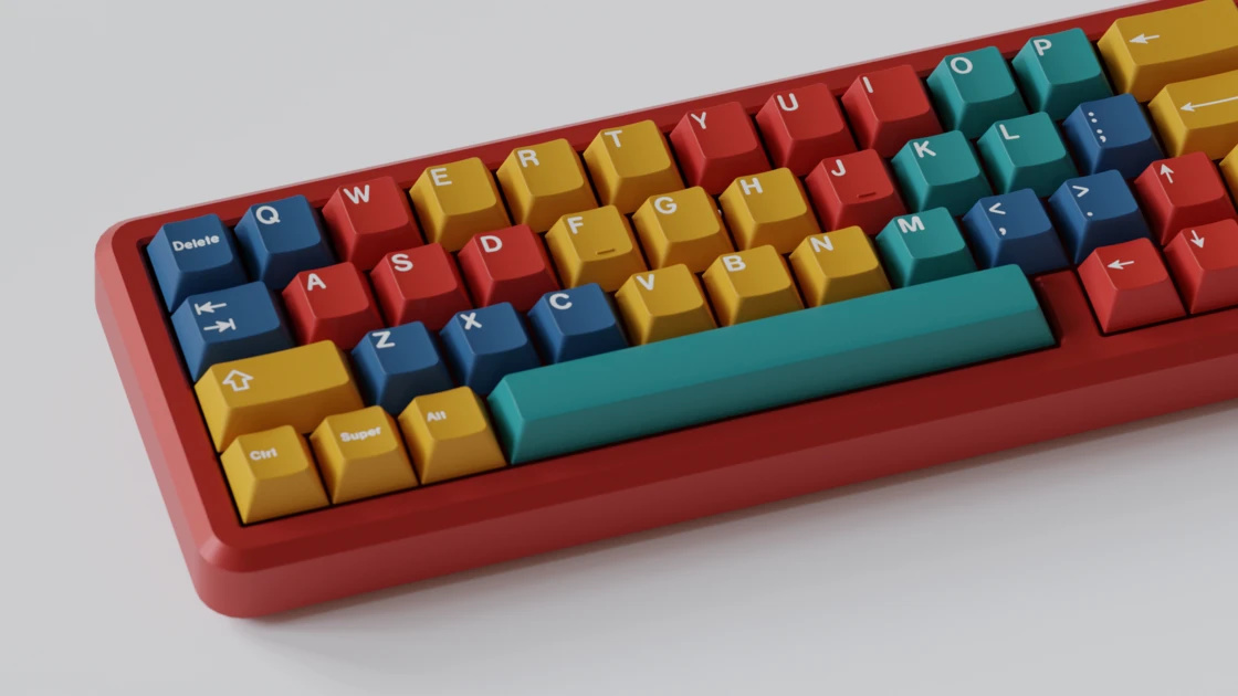 這款鍵帽是由Bub設計的一款色塊藝術主題鍵帽,靈感來源於Volkswagen’s Harlequin Car(大衆小丑車)同時受蒙德里安風格和上世紀90年代的美學影響。