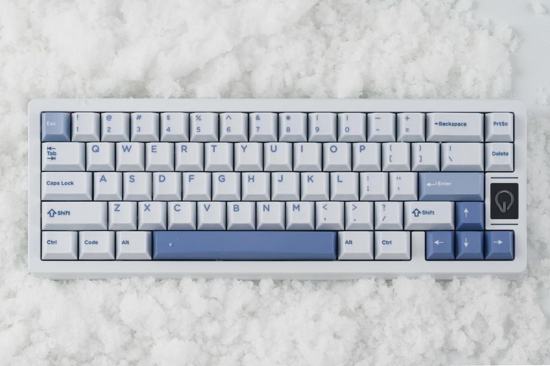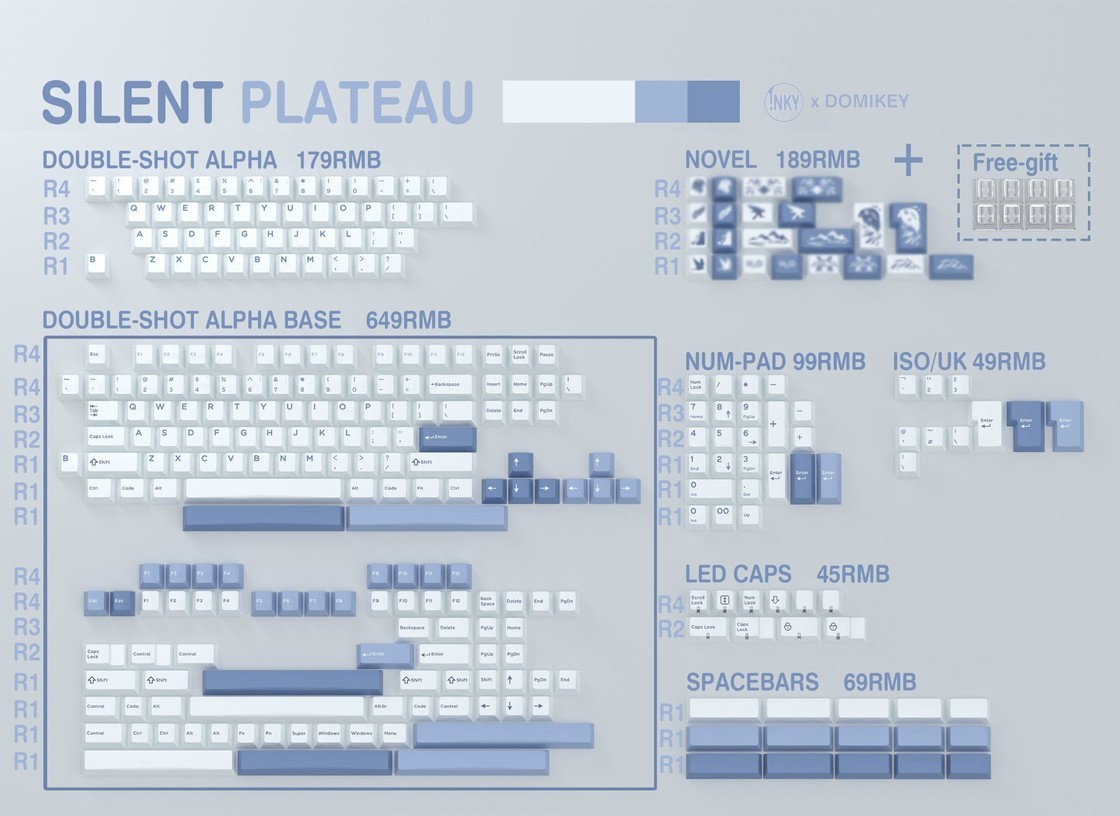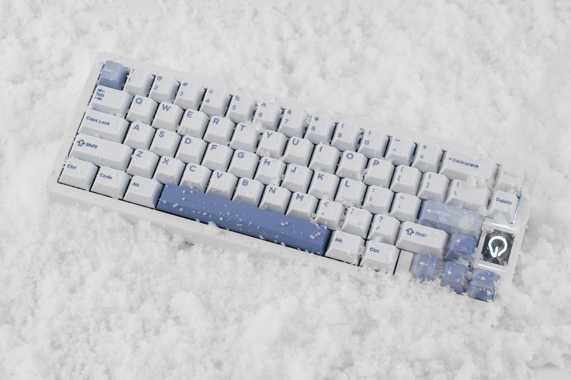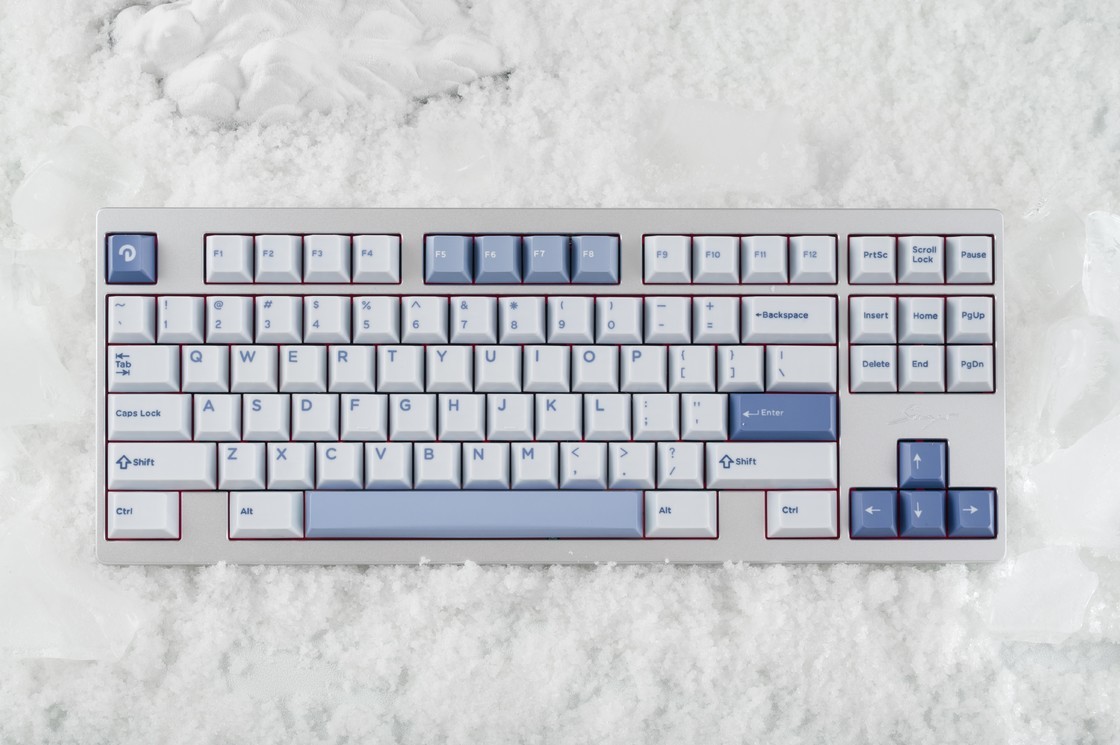 其實藍白色系的鍵帽在市面上並不少見,既有北極圈這種經典設計,也有雪怪這種漸變佳作,想要再將藍白搭配做出新意,就需要在個性設計和顏色調配上下大功夫了,而寂靜高原則是在鍵帽的透明度上下功夫。