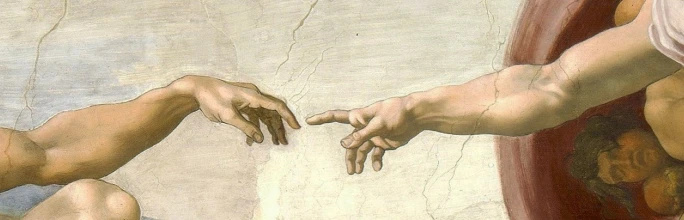 最顯眼的的就是米開朗基羅的《創世紀》中若即若離的手,緊隨其後的則是山、水、人的簡化表達,這幾項元素也是由主題「自然影響」延伸而來。