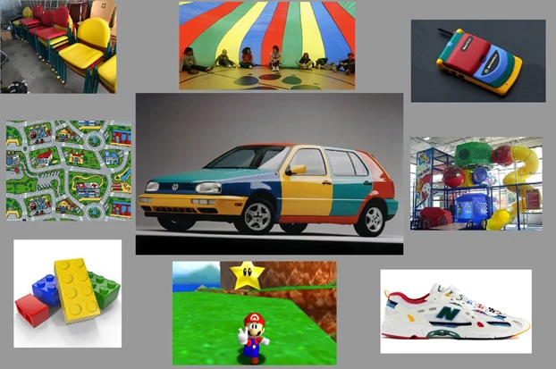 小丑車身的色塊設計可不是亂塗亂畫,大衆爲了使四個構建基塊更具可視化效果,開發了顏色代碼,其中藍色代表發動機和底盤,黃色代表設備,紅色代表選件,綠色代表油漆顏色。最初這只是一個小小的營銷噱頭,後來逐漸演變成一種藝術形式。