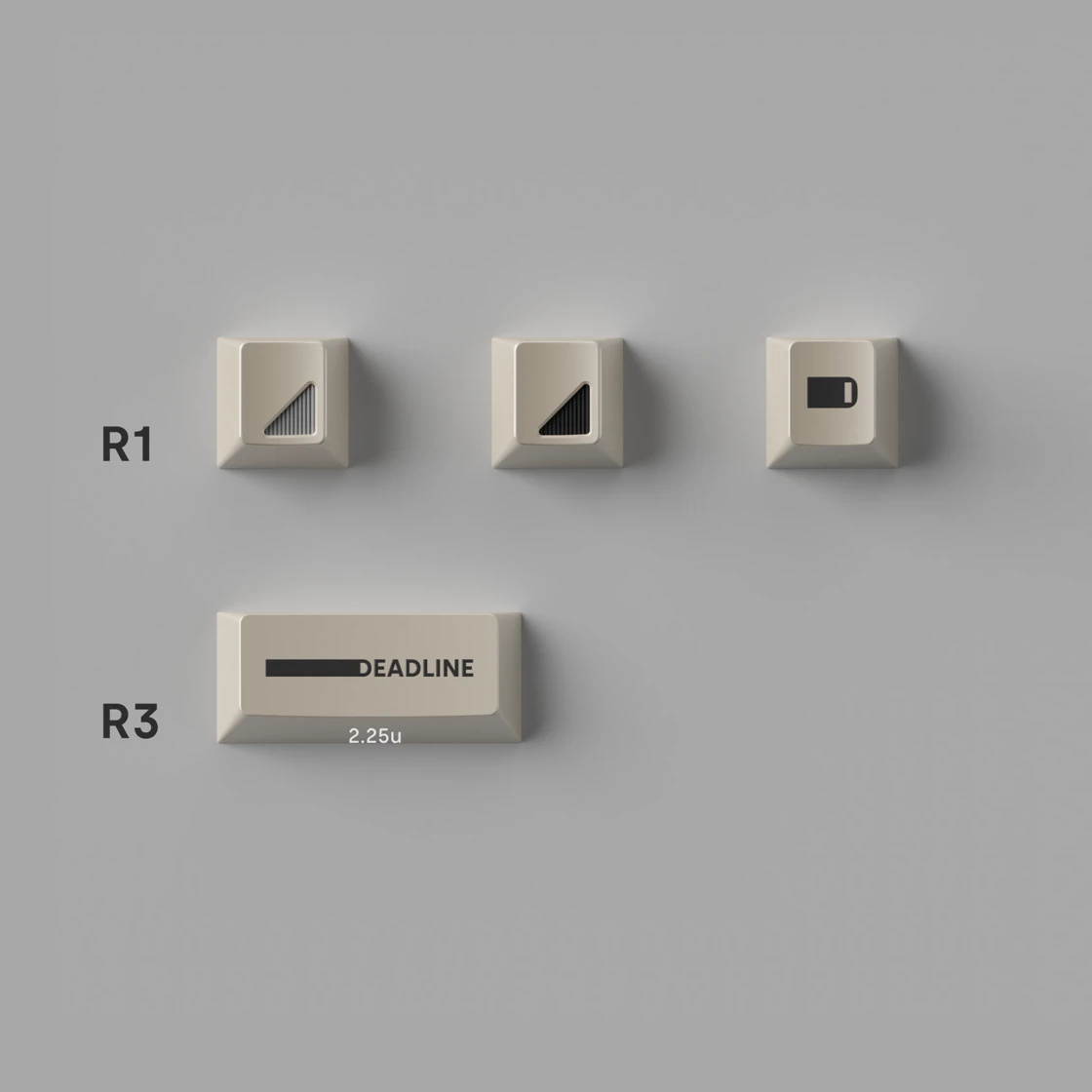 這款鍵帽是由Deadline工作室的設計師DDL設計的一款簡約辦公風鍵帽,爲了搭配自家NR66奶白色而推出的作品。