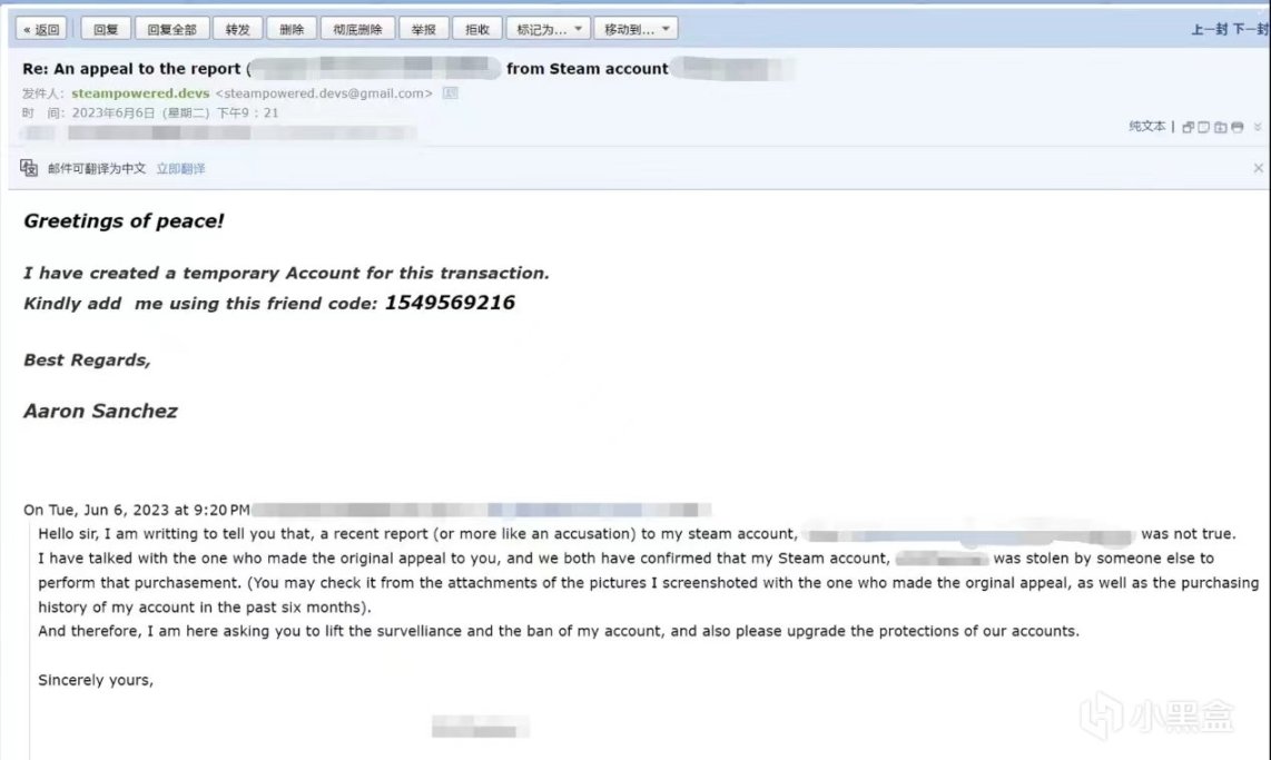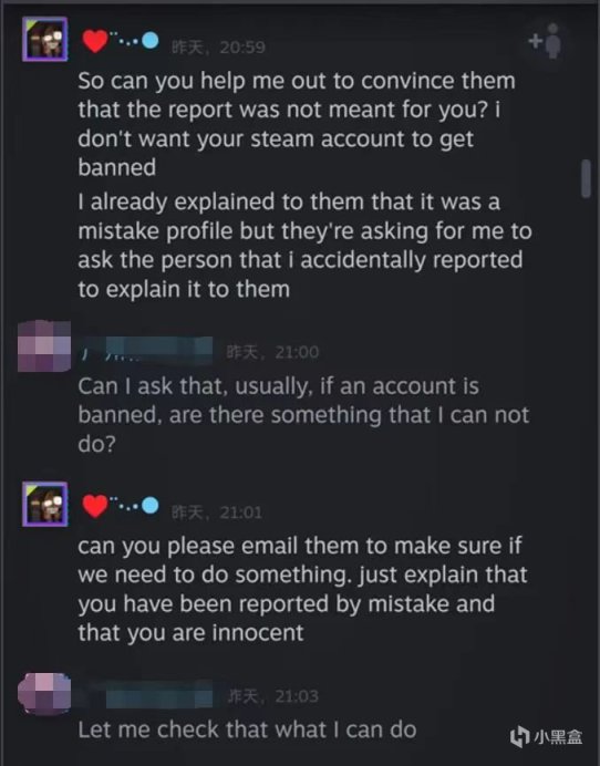 这位陌生人将以此为由向 Steam 官方发了投诉,打算让 Steam 平台出面对我的账号进行封禁。