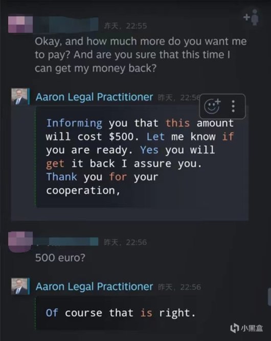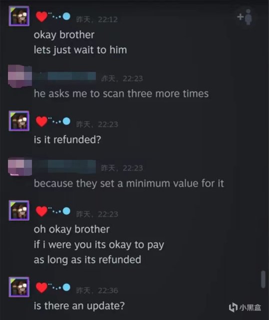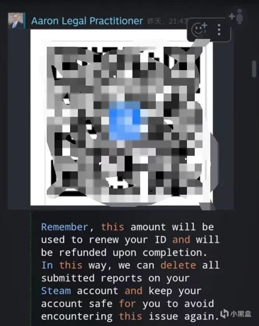 我的 Steam 账号有着极其重要的意义,上面记录着我大大小小的游戏经历,是我在将近 10 年的游戏时光中最为倚重的纪念。当时的我是保号心切,按步骤一一照做。随后,“客服”让我发一下自己的收款码以便直接退钱。然而在我的截图发过去后,事情又有了新的发展。