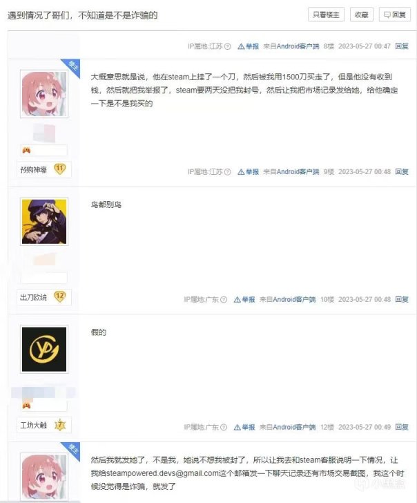 当时,我还考虑到另外一个因素,近期 Steam 上频繁出现的“小红车黑客盗号”事故,有可能是因为自己的账号被盗,或者因为其他什么原因导致了对方出现错误的交易记录。