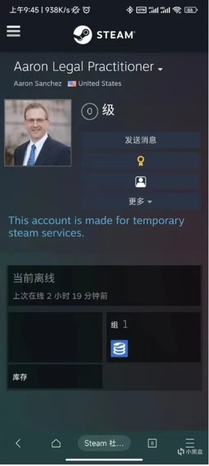 随后,我通过电子邮件与对方取得了联系,对方提供了他在Steam平台的私人账户。我很快地找到了这个账号,然后发现这个账号还备注着“This account is made for temporary steam service(此账号用于 Steam 临时服务)”,这似乎有那么点官方的意思。