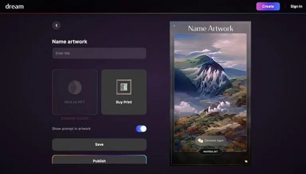 这是由加拿大初创公司WOMBO开发的AI NFT创作者应用程序WOMBO Dream。它被许多人认为是全能的NFT创作者应用。