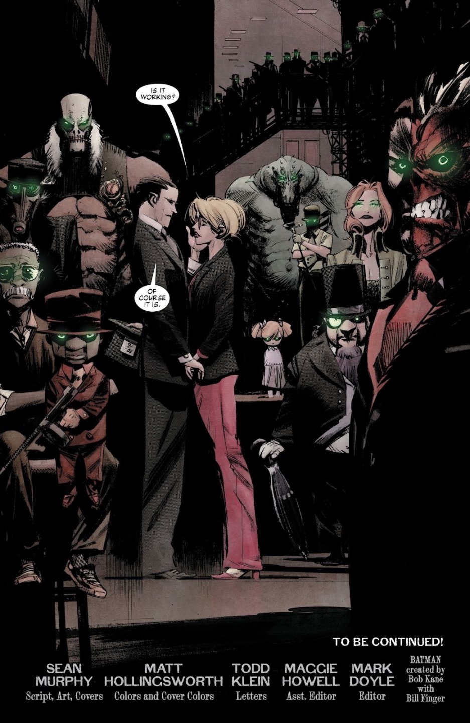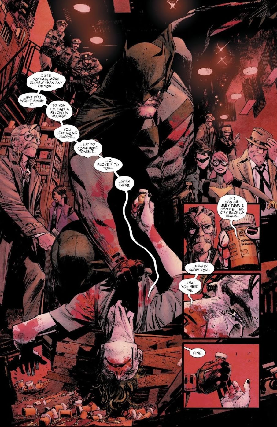 果不其然,小丑认为这些废弃药品能够将其变为正常人,唆使老爷喂他吃下,以此证明“这座城市需要我!你百特曼需要我!”老爷二话不说地暴力将药丸倒进小丑地嘴里,在其昏迷中结束了这场闹剧。