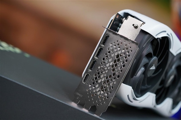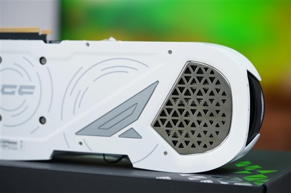 索泰RTX 4090 PGF顯卡設計靈感來自極簡未來主義,整卡大範圍使用圓環與弧線,爲顯卡注入了流動與韻律。隱藏於面罩下的弧形ARGB燈效,達成點到即止的昇華效果。