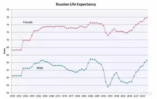 俄羅斯預期壽命統計表:不難看出戈爾巴喬夫上臺後有所改善
