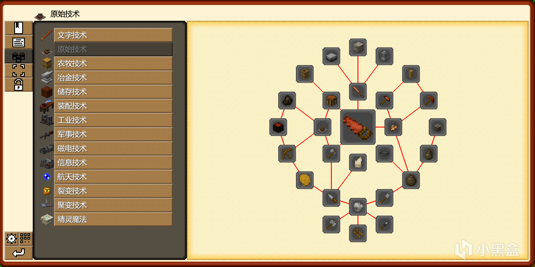 前面所有整合包的科技樹都是分章節來的,我的整合包相比起來就有點慘不忍睹了……